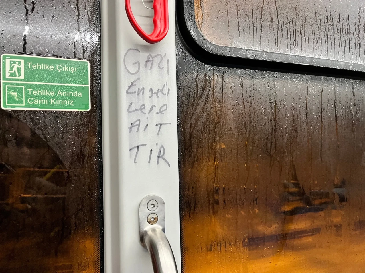 Otobüs içerisinde, acil durum cam kırma çekici ve engelli alanının bulunduğu bölümde yer alan yazının hem kamu malına zarar verdiği hem de toplumsal hassasiyetleri hiçe saydığı ifade edildi. Özellikle alanın bu şekilde kirletilmesi, yolcular tarafından “saygısızlık” olarak değerlendirildi.