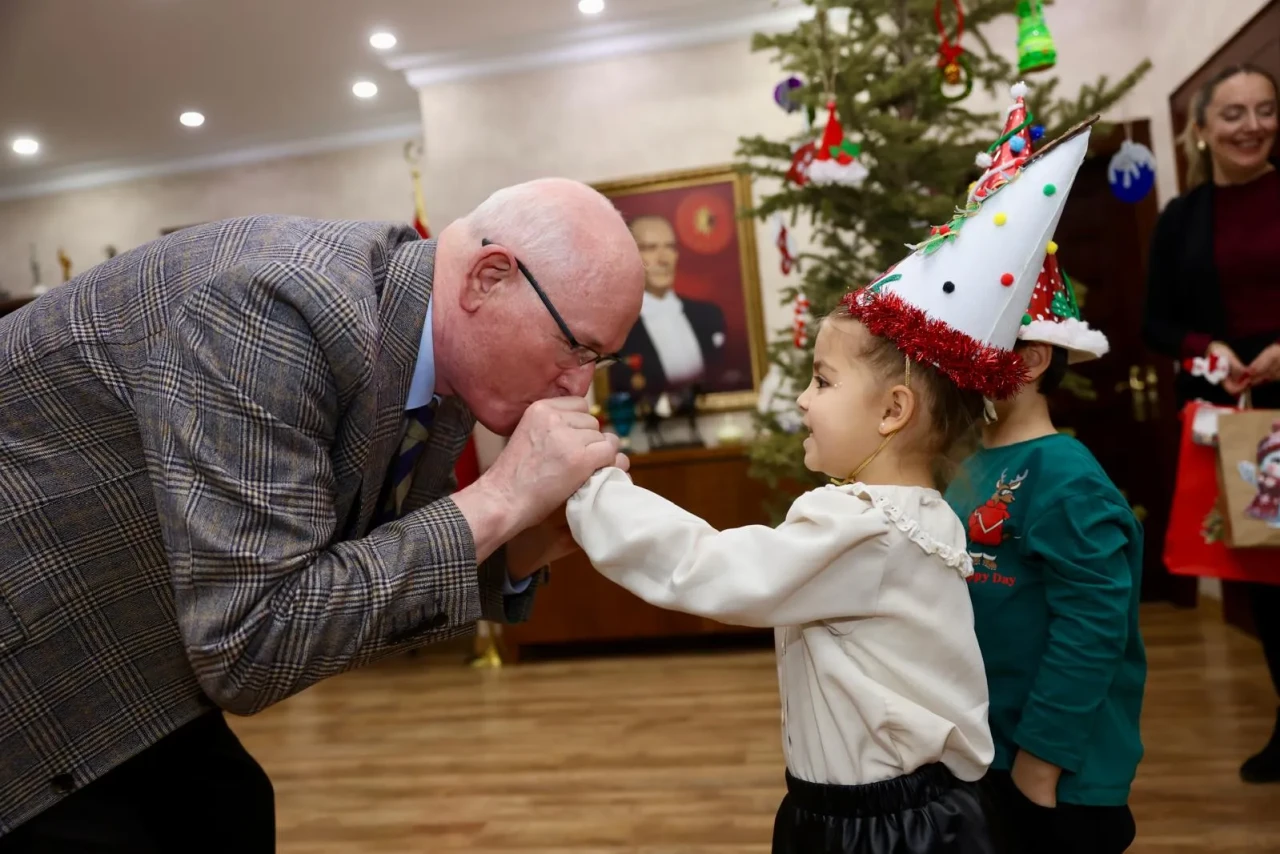 Neşeli halleriyle dikkat çeken çocuklar, ziyaret sırasında Başkan Kurt’un makam odasında bulunan yılbaşı ağacını birlikte süsledi. Renkli süsler ve kahkahalar eşliğinde gerçekleşen etkinlikte keyifli anlar yaşandı. Başkan Kazım Kurt, minik misafirlerine yeni yıl hediyesi verirken, çocuklar da Başkan Kurt için hazırladıkları hediyeleri takdim etti.