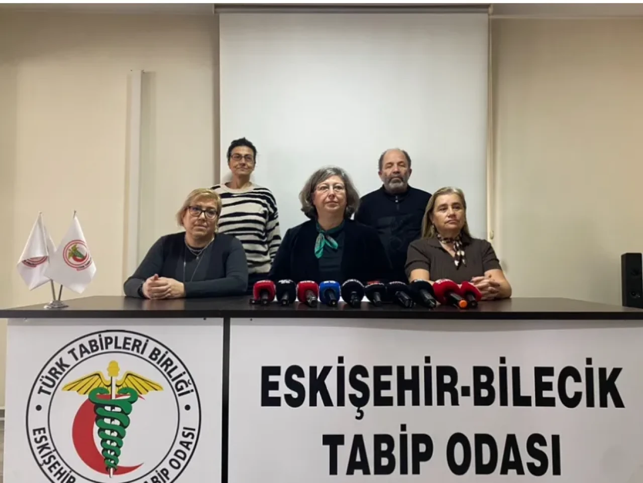 Eskişehir-Bilecik Tabip Odası Yönetim Kurulu adına açıklama yapan Dr. Nazan Aksaray, Türkiye’de sağlık sisteminin ciddi bir yönetim krizi içinde olduğunu belirtti. Sağlık Bakanlığı’nın uygulamalarının sağlık ortamını içinden çıkılmaz bir sorunlar yumağına dönüştürdüğünü ifade eden Aksaray,