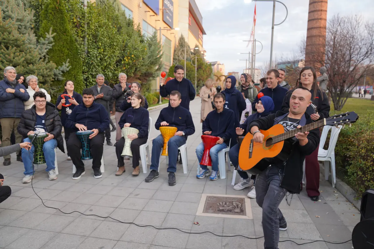 3 Aralık Dünya Engelliler Günü kapsamında düzenlenen serginin açılış törenine katılan Tepebaşı Belediye Başkanı Dt. Ahmet Ataç, özel bireyler tarafından ellerinde kartondan yapılmış kalplerle karşılandı. “Senden Daha Güzel” şarkısı eşliğinde gerçekleşen bu karşılama, sergiye duygusal bir atmosfer kattı. Açılış öncesinde ESOB Montaj Atölyesi öğrencilerinin sergilediği ritim gösterisi katılımcılardan büyük alkış aldı.