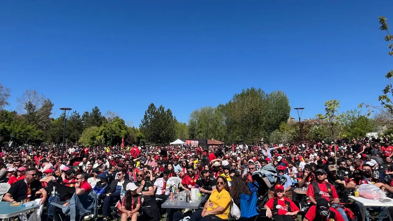 Kırmızı-siyahlı renklere gönül veren binlerce taraftar, formalarıyla ve bayraklarıyla sabah saatlerinden itibaren alana akın etti. Görselde de görüldüğü üzere Kanlıkavak, adeta stadyuma döndü. Coşkulu kalabalık, takımına kilometrelerce uzaktan tam destek veriyor.