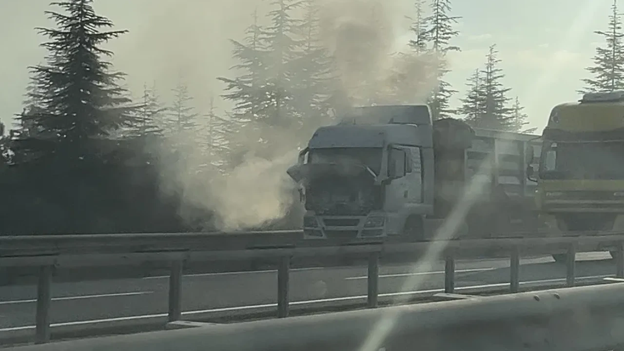 Eskişehir-Bursa karayolunda meydana geldi. Seyir halindeyken motor kısmından dumanlar yükselen tır, kısa sürede alev aldı. Yangını fark eden çevredeki sürücüler, yangın söndürme tüpleriyle alevlere müdahale etti.