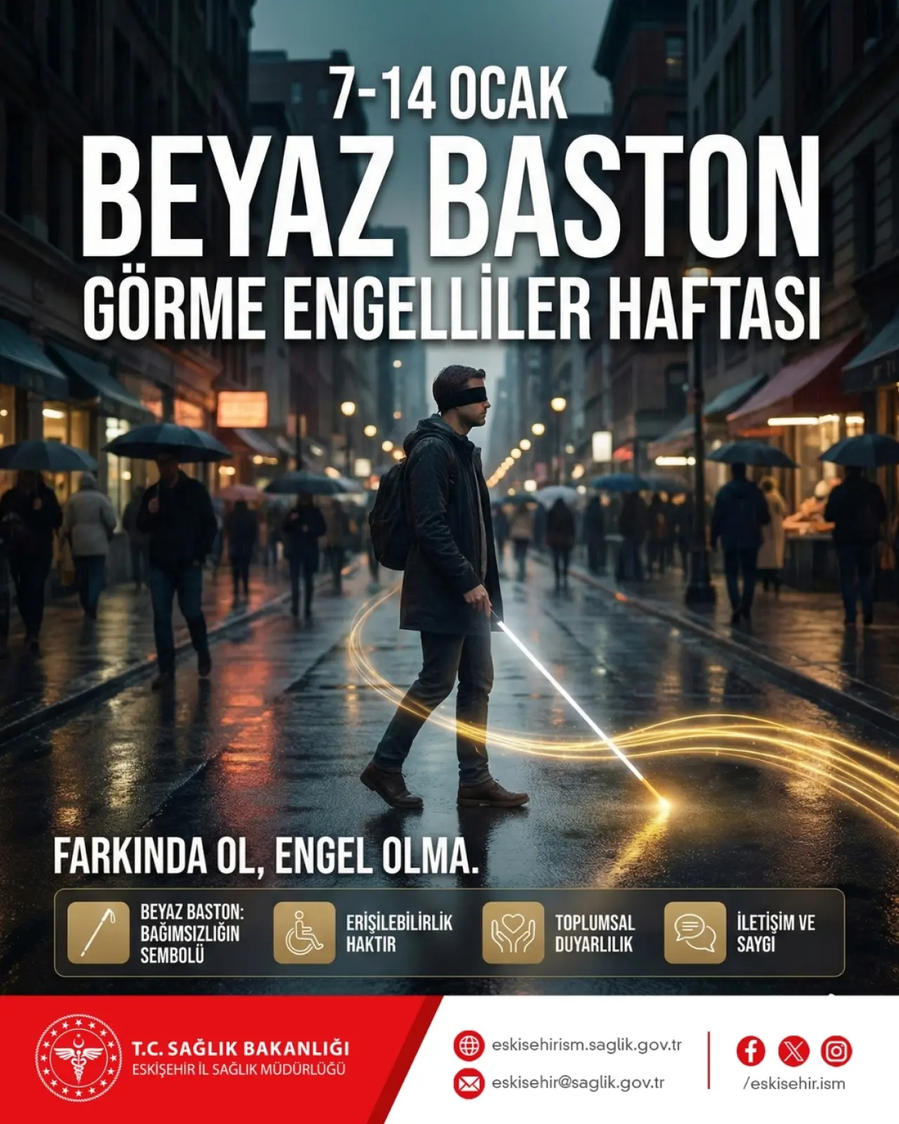 7–14 Ocak Beyaz Baston Görme Engelliler Haftası kapsamında açıklamalarda bulunan Eskişehir İl Sağlık Müdürü Doç. Dr. Yaşar Bildirici, görme engelli bireylerin yaşamını kolaylaştıran uygulamaların yalnızca bir duyarlılık değil, aynı zamanda toplumsal bir sorumluluk olduğunu ifade etti.