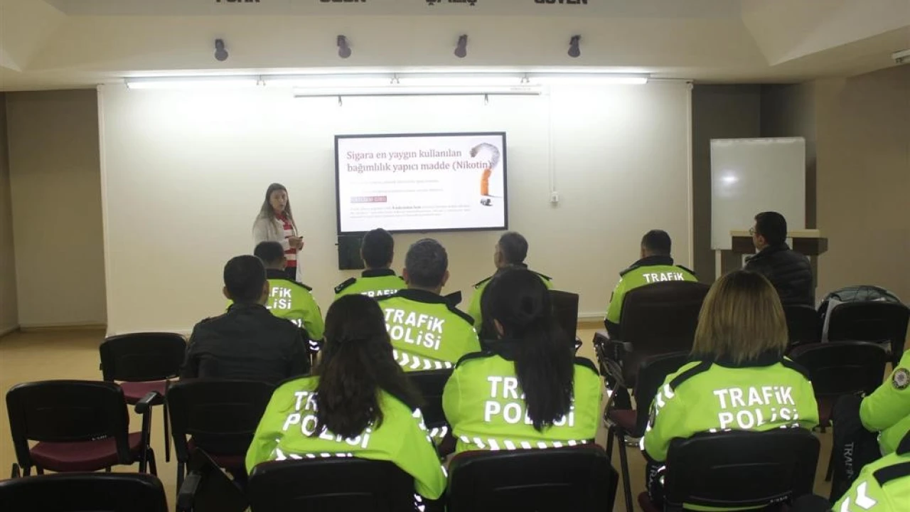 Toplumda tütün kullanımını azaltmak ve bireylerin sigarayı bırakma süreçlerini desteklemek amacıyla Eskişehir Trafik Polis Eğitim Merkezi Müdürlüğü’nde Dr. Pakize Gizem Topçu tarafından ’Tütün ve Tütün Ürünlerinin Zararları’ konusunda bilgilendirme eğitimi gerçekleştirildi. Eğitimin ardından katılımcılara Yerinde Sigara Bırakma Danışmanlığı Hizmeti kapsamında poliklinik hizmeti verildi ve bireylerin sigarayı bırakma yolculuğu desteklendi.