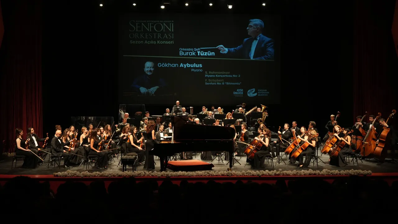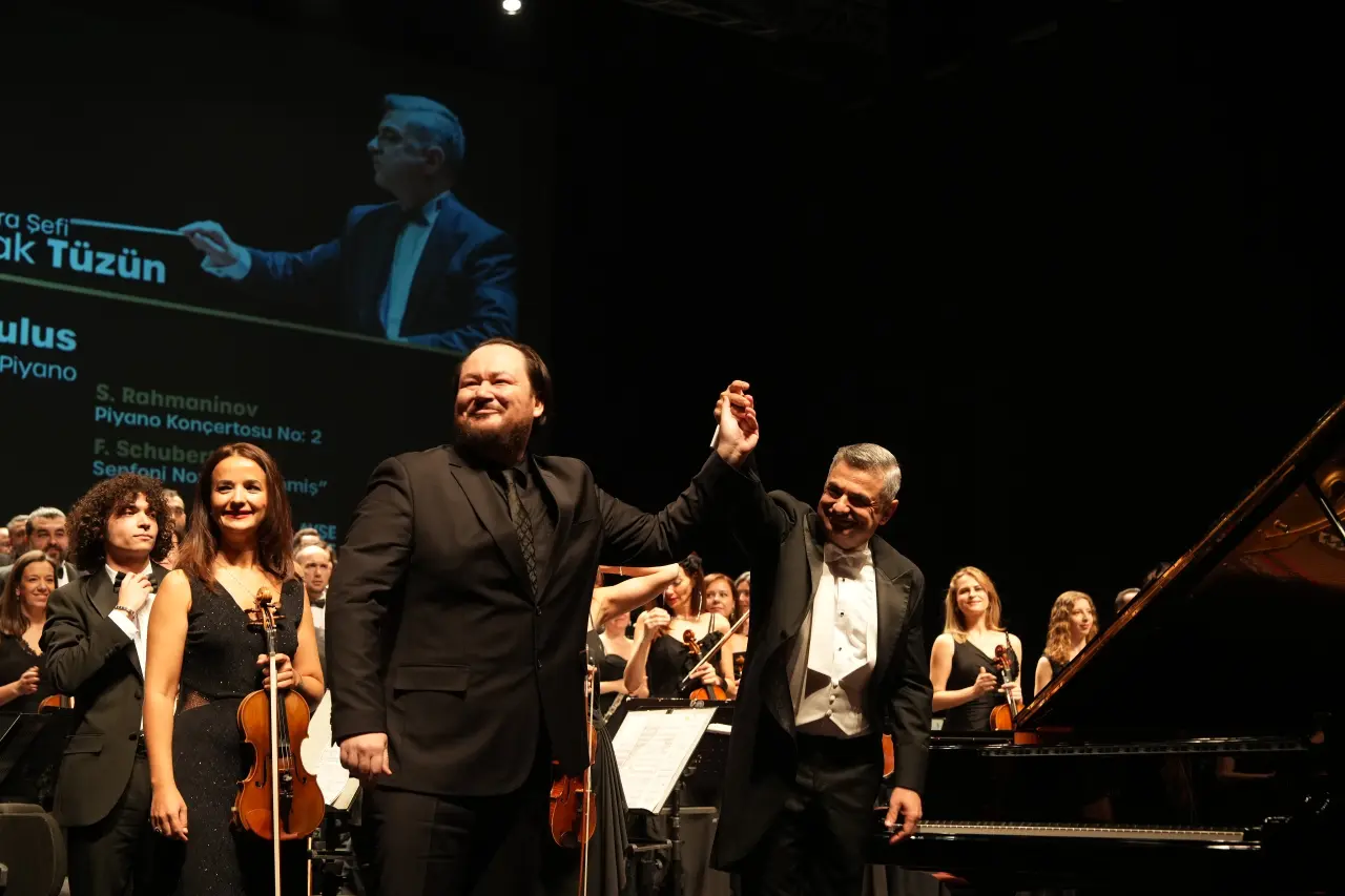 Konserin ilk bölümünde, romantik dönem Rus bestecilerinden S. Rahmaninov’un başyapıtlarından biri olan 2 numaralı piyano konçertosu seslendirildi. İlk kez 1901 yılında Moskova’da bestecinin kendi solistliğinde icra edilen ve o günden bu yana klasik müzik repertuvarının vazgeçilmezleri arasında yer alan eser teknik zorlukları ve derin duygusal anlatımıyla dikkat çeken eserlerden biridir. Gökhan Aybulus’un yorumuyla hayat bulan konçerto, salondaki dinleyicilerden büyük beğeni topladı. Dinmeyen alkışları karşılıksız bırakmayan sanatçı J.S. Bach’ın A.Siloti tarafından düzenlenen prelüdü ile bis yaptı.