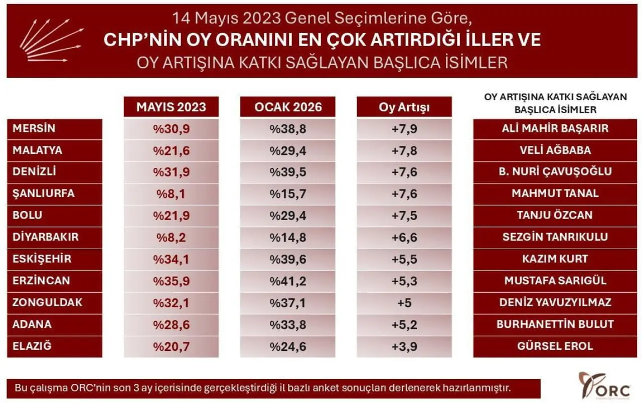 Kazım Kurt’un sözsüz mesajını en güçlü kılan veri ise seçimden sonra geldi. ORC Araştırma Şirketi’nin son verilerine göre; Kazım Kurt, seçim performansının üzerine koyarak desteğini yüzde 5,5 oranında artırdı.