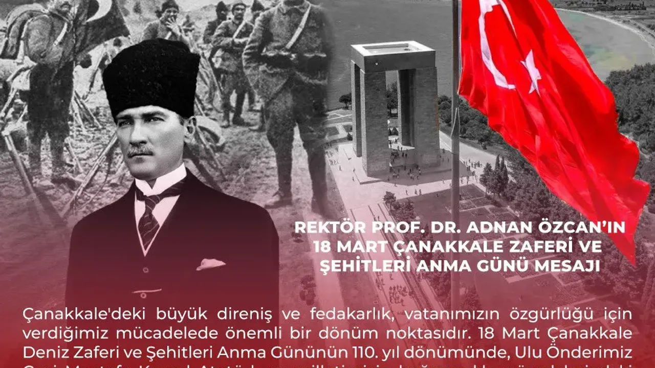 Eskişehir Teknik Üniversitesi Rektörü Prof. Dr. Adnan Özcan, 18 Mart Çanakkale Deniz Zaferi ve Şehitleri Anma Günü'nün 110. yıl dönümü dolayısıyla bir mesaj yayımladı. Mesajında, Çanakkale'deki büyük direniş ve fedakarlığın, vatanın özgürlüğü için verilen mücadelede önemli bir dönüm noktası olduğunu vurguladı.