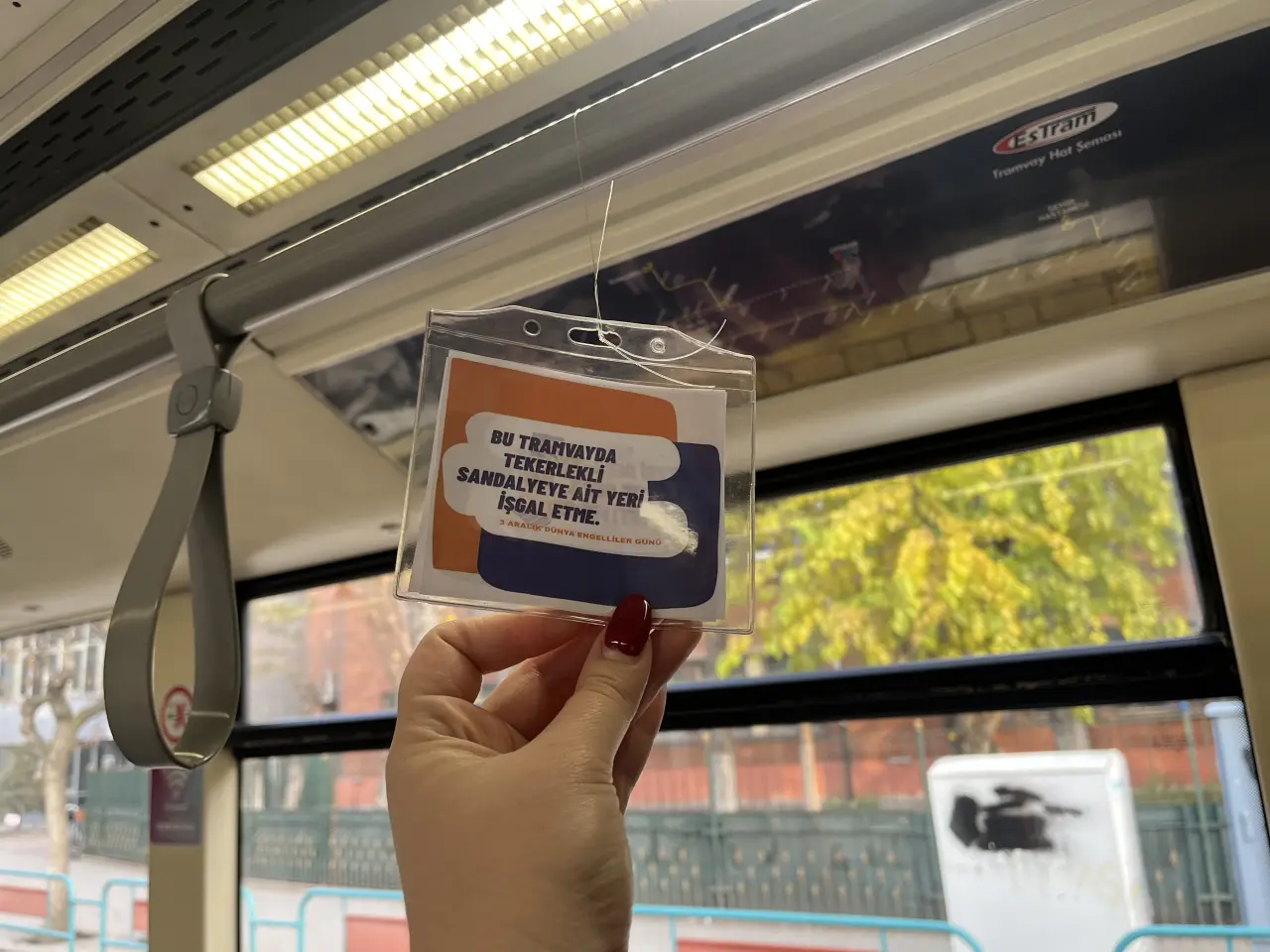 “Bu tramvayda tekerlekli sandalyeye ait yeri işgal etme”