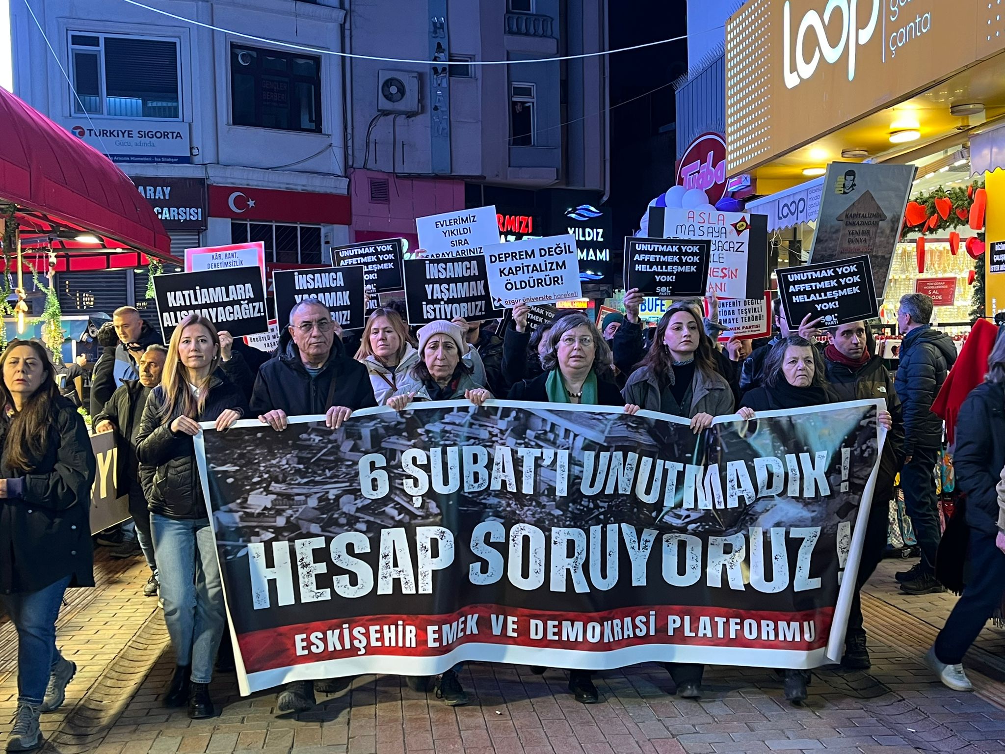 6 Şubat 2023’te Kahramanmaraş merkezli meydana gelen ve 11 ili etkileyen depremlerin üçüncü yılında Eskişehir’de anma programı düzenlendi. Köprübaşı'nda Yediler Parkı'na doğru yürünülen anma programında, Emek Partisi Eskişehir İl Başkanı Ceren Kökoğlu, yaşanan felaketin doğal bir afet değil, rant politikalarının sonucu olduğunu ifade etti.