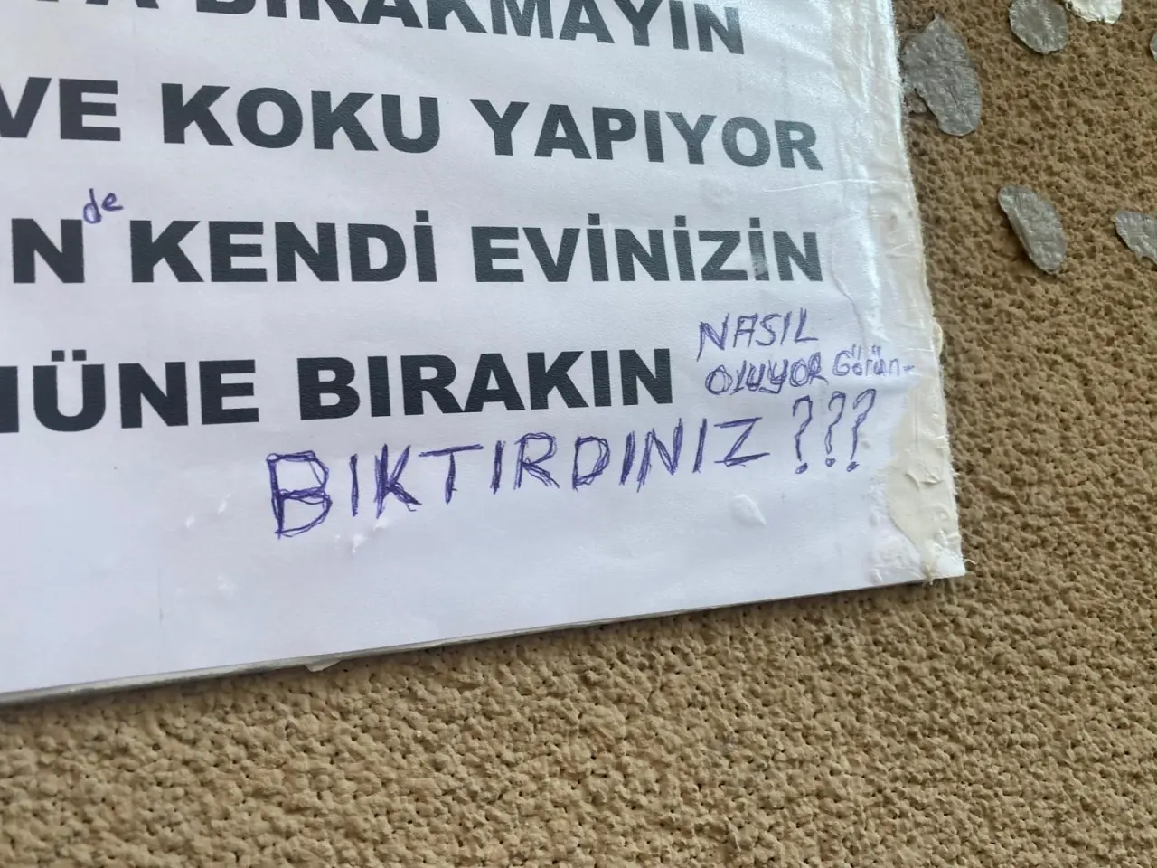 Sokaktan geçen vatandaşlar ise notların hem mizahi hem de sert bir üslupla yazıldığını belirterek, bu tür çevre sorunlarına daha fazla dikkat edilmesi gerektiğini ifade etti.