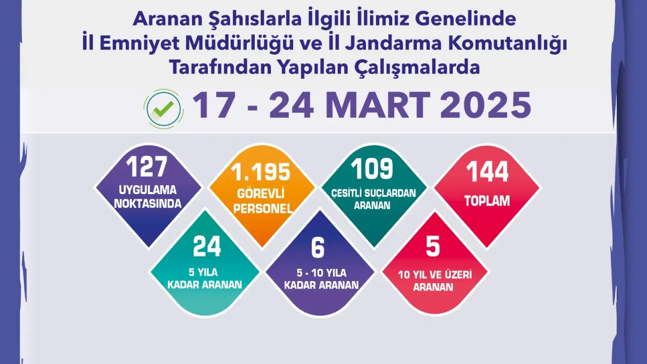 - Toplam 144 aranan kişi,