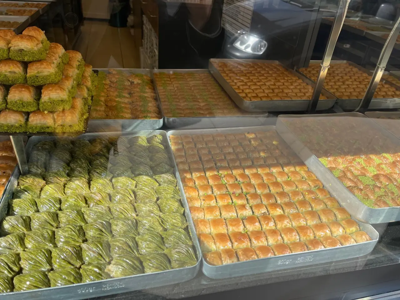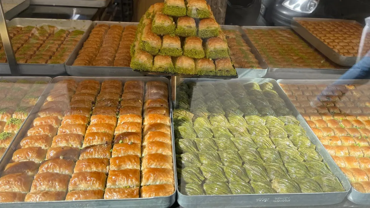 İşletmelerin cam tezgâhlarında cevizli ve fıstıklı baklava çeşitleri sergileniyor. Bayram öncesinde sipariş yoğunluğunun artması bekleniyor.