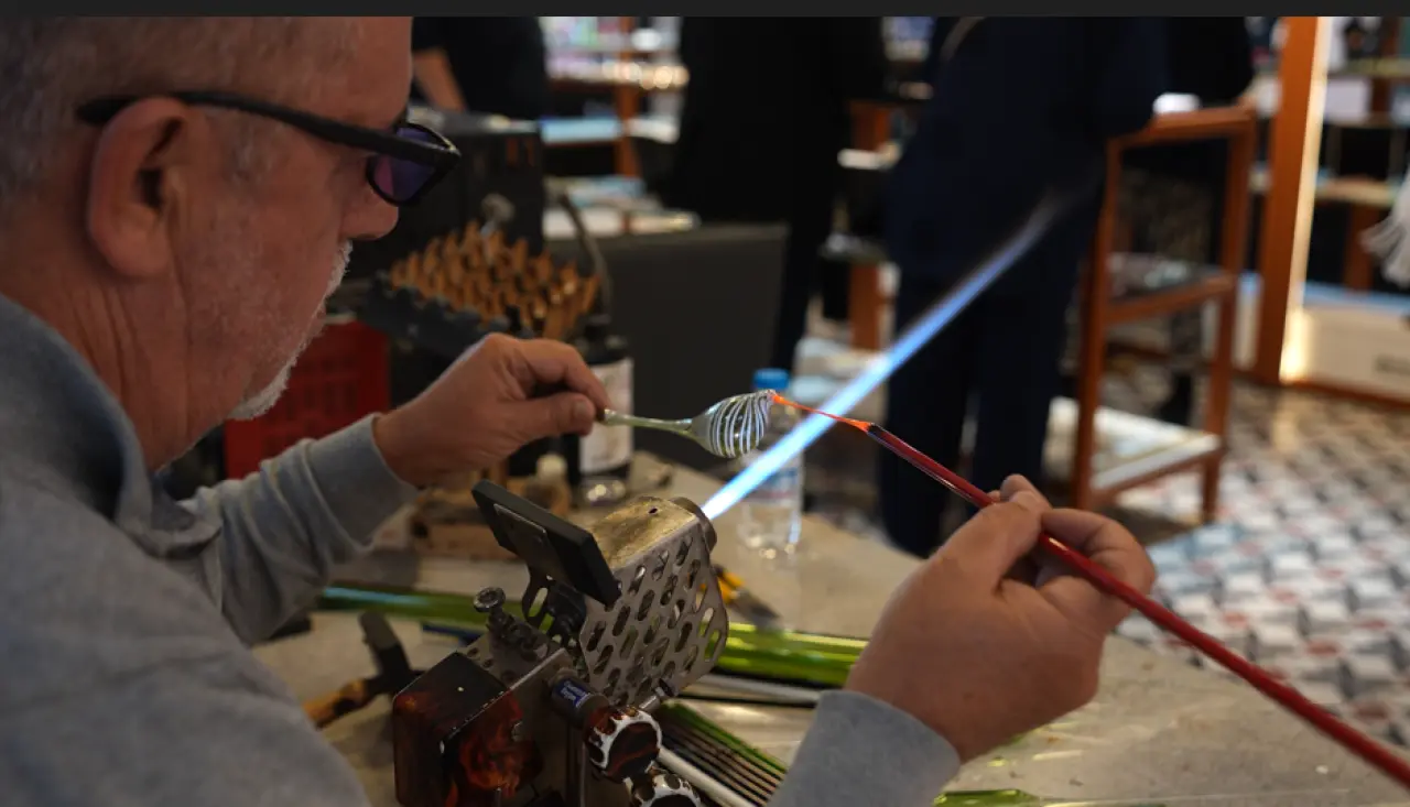 Mesleğini yurt dışında İtalya'da öğrenen Kaan Çil cama nasıl şekil verdiğini ve atölyesinden şu sözlerle anlattı “Dünyadaki temel adı bunun açık alevde soğuk camı şekillendirme tekniği. Hem figürler yapıyoruz hem takılar hem büyük tasarımlar işte gördüğünüz gibi atölyemizdeki birçok tasarımı burada yapıyoruz. “