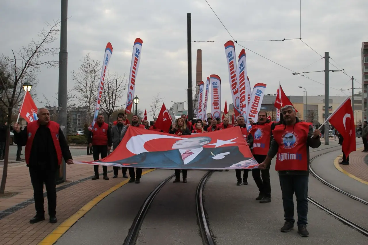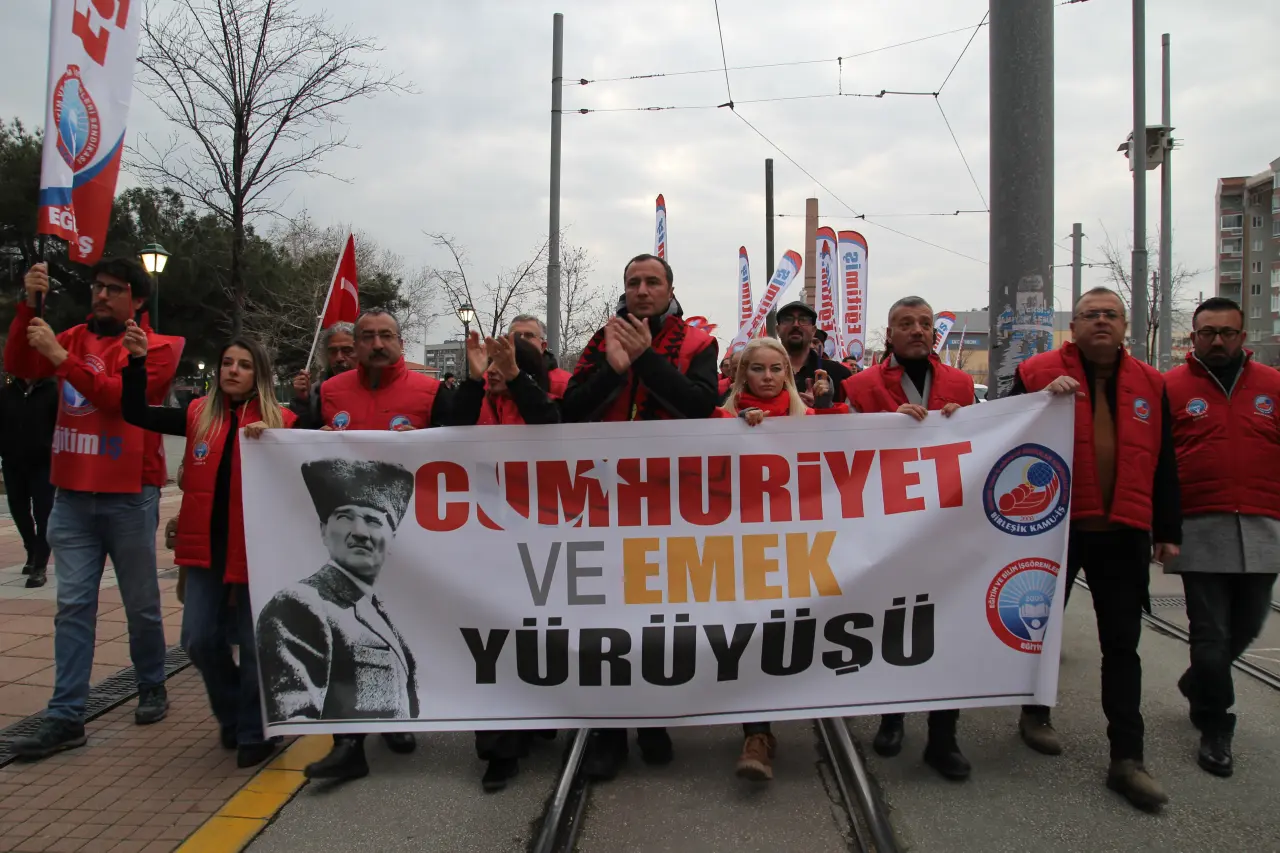 Eğitim-İş Başkanı Kadem Özbay, Eskişehir’de düzenlenen Cumhuriyet ve Emek Yürüyüşü’nde yaptığı konuşmada, Cumhuriyet’in bağımsızlık mücadelesinin temellerinin atıldığı Eskişehir’de, vatan, bağımsızlık ve emek için omuz omuza durmanın onurunu yaşadıklarını ifade etti.