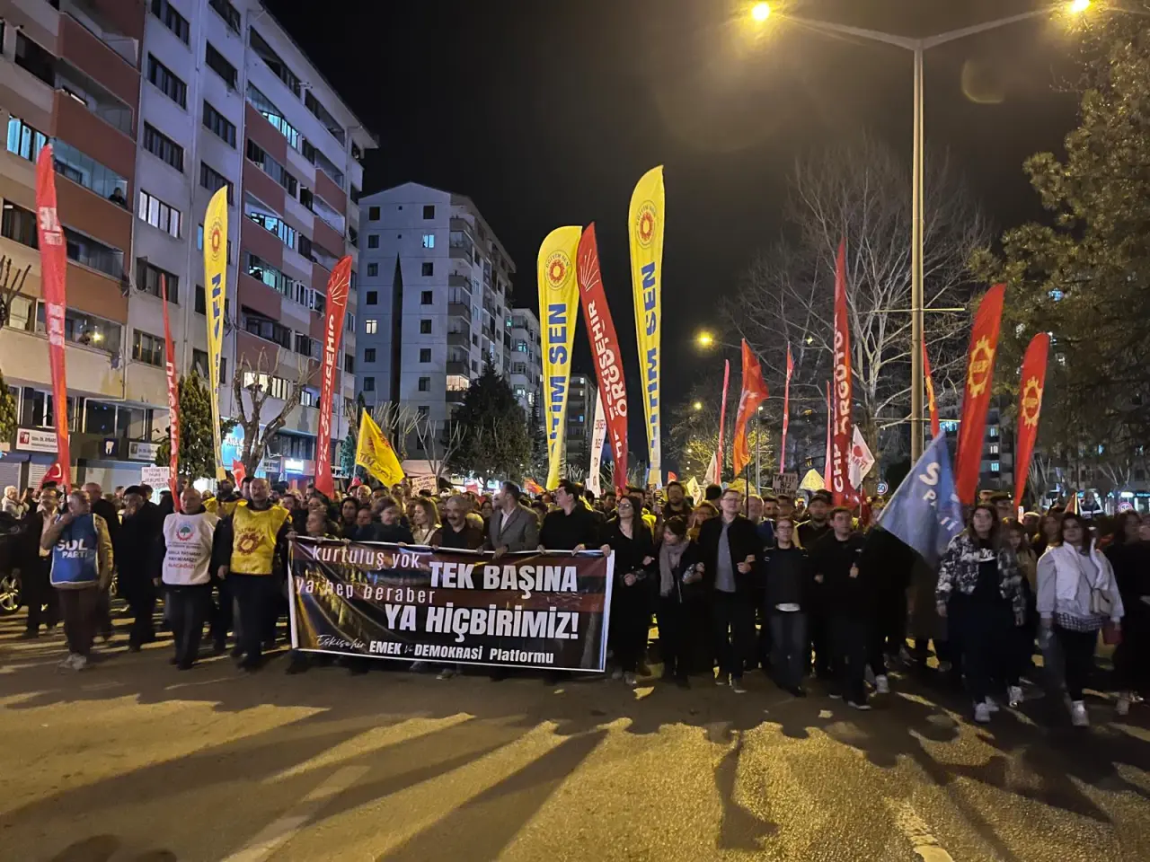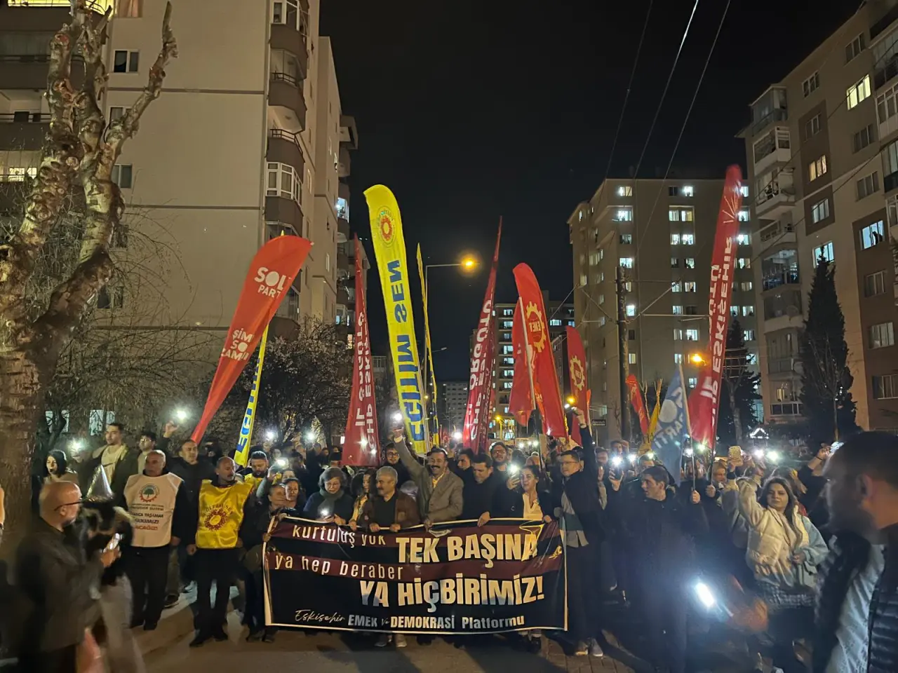 Eskişehir Emek ve Demokrasi Platformu tarafından düzenlenen yürüyüş, bu akşam Atatürk Bulvarı’ndan başlayarak Cemevi önüne kadar devam etti.