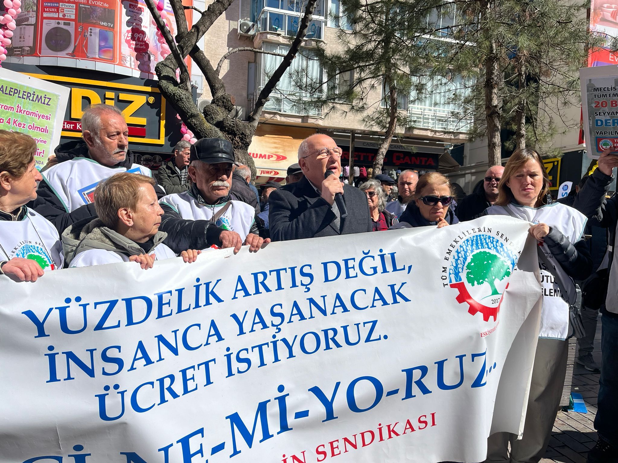 Eyleme destek vermek amacıyla katılan CHP Eskişehir Milletvekili Utku Çakırözer de emeklilerin yaşadığı ekonomik zorluklara dikkat çekti. Önümüzdeki hafta sonu kutlanacak bayrama emeklilerin yüzü gülerek giremediğini söyleyen Çakırözer, Meclis’te sık sık Türkiye’nin zenginleştiğine dair söylemler dile getirildiğini ancak bunun emeklilerin hayatına yansımadığını ifade etti.