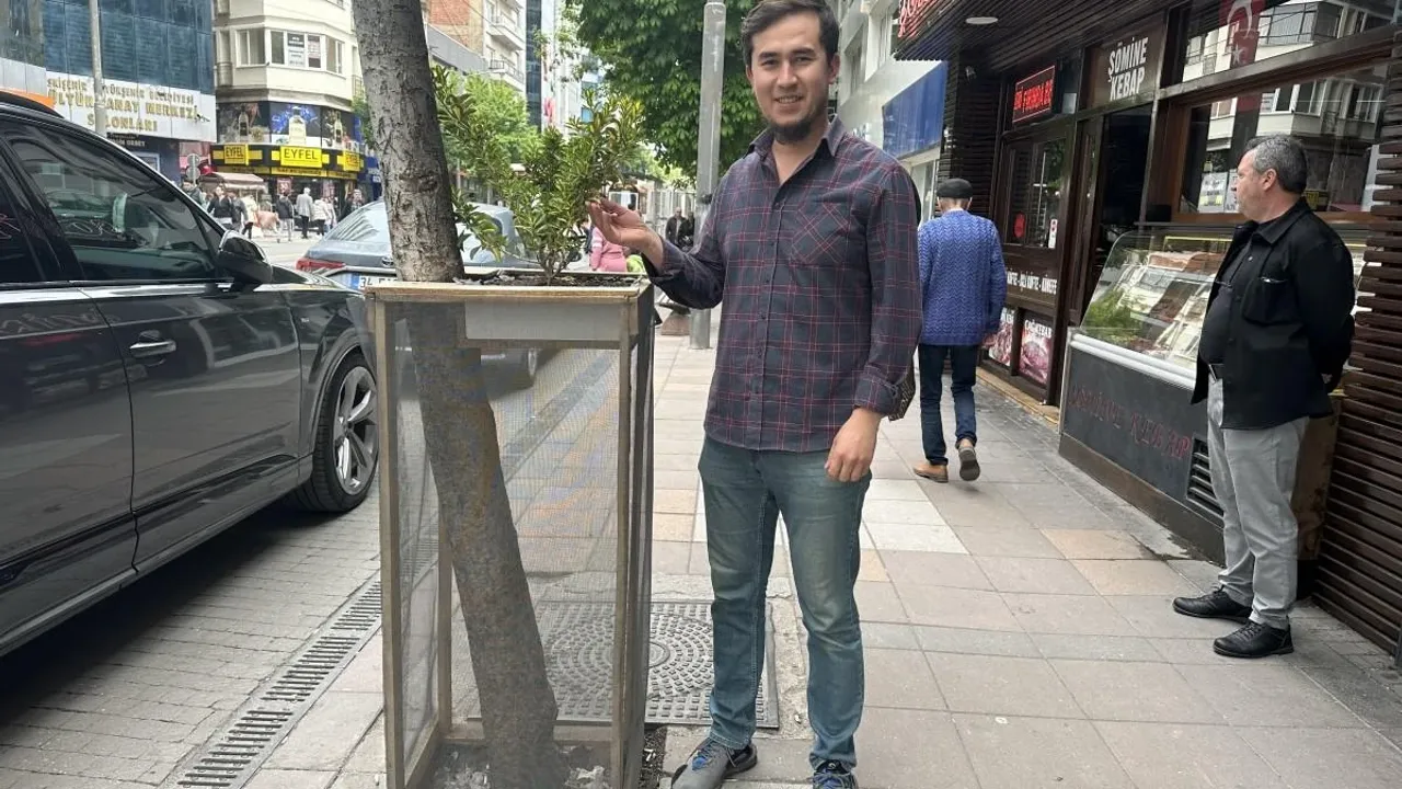 Dükkânın önündeki ağacın bağlanan bisikletlerden ve dibine atılan çöplerden dolayı zarar gördüğünü belirten Nur Mehmet Çınar, bu durumun kendilerini rahatsız ettiğini söyledi. Bir çözüm yolu ararken ağaç etrafını çit ile çevreleme fikrini bulduklarını dile getiren Çınar, şunları söyledi: “Bu çiti yapma amacımız ağacı bisikletlerden ve çöplerden korumaktı. Güzel gözükmesi için de üst kısma çiçek ektik. Şimdilik çözüme ulaşmış gibiyiz, en azından artık duyarsız vatandaşlar tarafından bisiklet bağlanıp ağaca zarar verilmiyor. Ağaçlara bisiklet bağlanmasından çevre esnafı da rahatsız oluyor. Bazen 3 tane bisiklet bağlanıyordu, hem kötü bir görüntü oluyor hem de dediğim gibi ağaç zarar görüyor. Bazen ağacın dibinde sigara izmaritleri birikmeye devam ediyor. Hala sigara izmariti atanlar oluyor ya da yere atılan izmaritler orada birikiyor tam bilemiyorum ama genel olarak iyi bir çözüm oldu. Şimdi çevredeki esnaflar da böyle bir çit yaptırmak istiyor, ‘Bize de yapar mısın?’ dediler. Karşı caddedeki esnaflar da istiyor. Anlaşılan hem kalıcı bir çözüm olacak hem de üzerine ekilecek çiçeklerle güzel bir görüntü elde edeceğiz” dedi.
