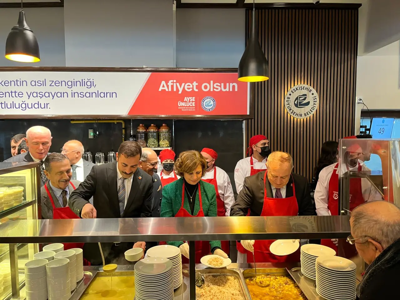 Başkan Ünlüce, “Bir kentin asıl zenginliği o kentte yaşayan insanların mutluluğudur. Kent Lokantamızda başlattığımız Askıda Yemek uygulamasında Genel Başkan Yardımcımız Gökan Zeybek'in çok büyük desteği oldu. Ne mutlu bize ki; şu anda yapılan bağış, yenen yemekten daha fazla. Dayanışmayı seven, yardımlaşmayı seven hemşehrilerimizin yüce gönüllülüğüne buradan bir kez daha teşekkür ediyorum. Eskişehir’in ilk kadın belediye başkanı olarak buradan sizleri selamlamaktan dolayı büyük bir gurur duyduğumu tekrar söylemek istiyorum.” diyerek Kent Lokantasına bağışlarıyla destek olanlara teşekkür etti.