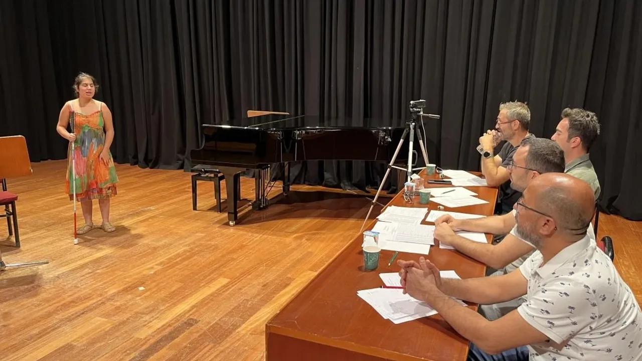 Anadolu Üniversitesi Devlet Konservatuarı Bölümü’nde eğitim almak isteyen görme engelli Helen Güçlü ile Ceren Altun, ilk aşama olan duyuş mülakatında başarılı olduktan sonra ikinci aşamada yetenek mülakatına girdi. Mülakatın düzenleneceği binanın önünde son provalarını yapan görme engelli öğrenciler, dikkatleri üzerine çekti. Hem hayat hikâyeleriyle hem de yetenekleri ile ön plana çıkan Helen Güçlü ile Ceren Altun, heyecan içinde yetenek mülakatına girerek hünerlerini sergiledi. “Konservatuvarın bana çok güzel şeyler kazandıracağına eminim” Annesi olarak gördüğü babaannesi tarafından büyük zorluklarla okul kayıtlarının yaptırıldığını ve eğitim gördüğü yerlerde sahne alarak sanata yaklaştığını belirten Helen Güçlü, “Şarkı söylüyorum ama bir bağlama geçmişim de var. Üniversitede onları devam ettirmeyi düşünüyorum. Konservatuvarın bana çok güzel şeyler kazandıracağına eminim. Görme engelliyim, 14 Ekim 2005’te 600 gram prematüre doğdum. Bir süre kuvözde kaldım. Daha sonrasında çok küçük olduğum için beni enjektörle beslediler. Yavaş yavaş normale döndüm. Bu süreçte ailem de çok şaşırdı ama benimle birlikte yaşama ayak uydurdular. Anaokulu için annem Gülizar hanım belediyeye giderek, “Hiçbir yer çocuğumuzu kayıt etmiyor, bize bir yol gösterin. Ben bu çocuğu okutmak istiyorum. Okumak bu çocuğun hakkı” dedi. Yılbaşı balosu yapılacaktı, ben bir şiirle ve müzikle başladım. Anaokulunda kafkas oyunları bile oynadım. Daha sonrasında ilkokulda ve ortaokulda korolara ve sololara katıldım. Benim Mustafa Genç Yılmaz isimli görme engelli bir müzik öğretmenim var. Onunla birlikte devam ettik. En sonunda buradayım. Konservatuvarı kazanınca inşallah mezun olup tamamlayacağım. Kültürümüze, kendimden bir iz bırakmayı ve ölene kadar müzikle ilerlemeyi düşünüyorum. Nereye geleceğimi de Allah bilir. Ben ölene kadar çalışmaya devam edeceğim” dedi. “Halk müziğini dünyaya aktarmak istiyorum”