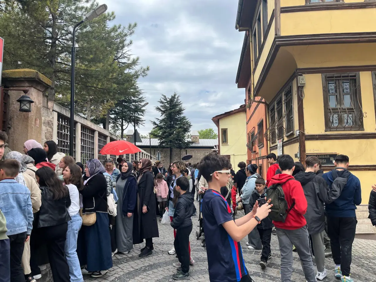 Kalabalığın yoğun olduğu anlarda, ziyaretçiler kapı önünde sıralar oluşturdu. Bazı aileler çocuklarına caminin tarihini anlatarak kültürel bir gezi fırsatı sundu.