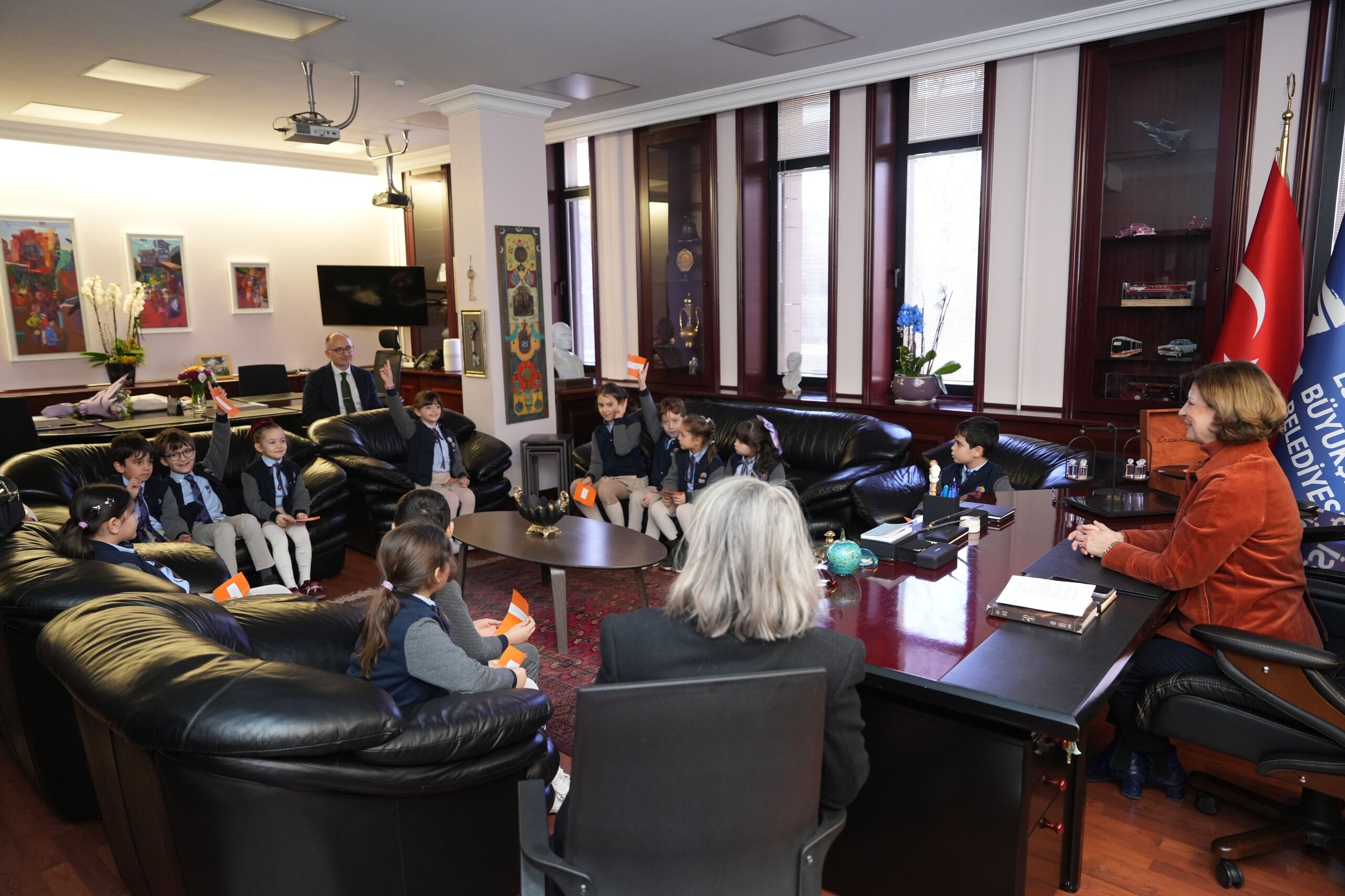 Özel Çağdaş Okulları öğrencileri ise Başkan Ünlüce’yi makamında ziyaret etti. Yerel yönetimler ünitesi kapsamında gerçekleşen buluşmada belediyenin şehir için yürüttüğü çalışmalar hakkında bilgi alan öğrenciler, başkanlık makamını yakından görmenin mutluluğunu yaşadı.