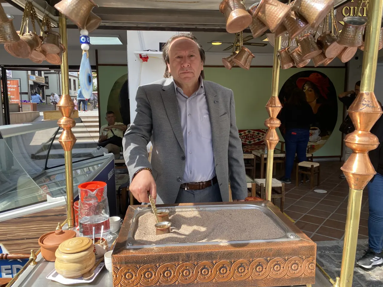 “Kahve kültürümüz Osmanlı'dan geliyor. Biz de burada bu kültürü yaşatmaya çalışıyoruz. Vatandaşlarımız kumda kahveye oldukça ilgi gösteriyor. Kaliteli kahve kullanmak çok önemli. Kumda, kahvenin her tarafı aynı anda yavaşça pişiyor ve bu da eşsiz bir lezzet ortaya çıkarıyor. Sevgimizi de katıyoruz. Bu yüzden bir fincan kahve içen genellikle ikinciyi de istiyor.”