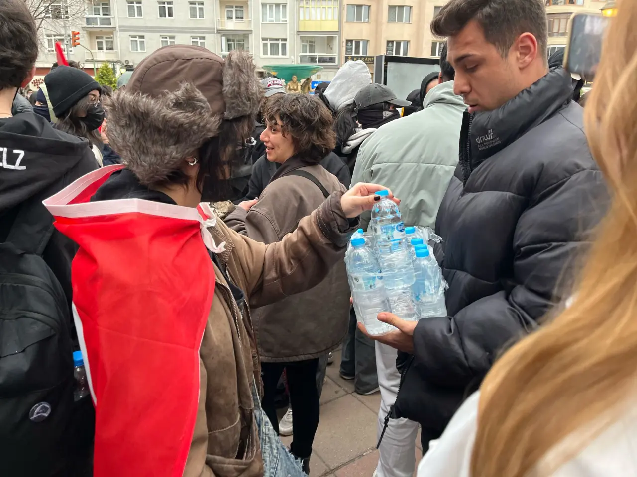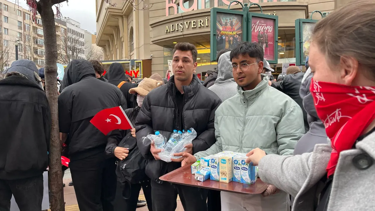 Gösteri alanının çevresinde kurulan küçük masalara dizilen su şişeleri ve kutu sütler, dikkat çekti. Vatandaşlar, gençlerin müdahalelere karşı hazırlıklı olabilmesi için getirdikleri ürünleri hem masalara bıraktı hem de tek tek dağıttı. Bazı kişiler, ellerindeki süt ve su paketlerini kalabalığın içine taşıyarak paylaşımda bulundu.