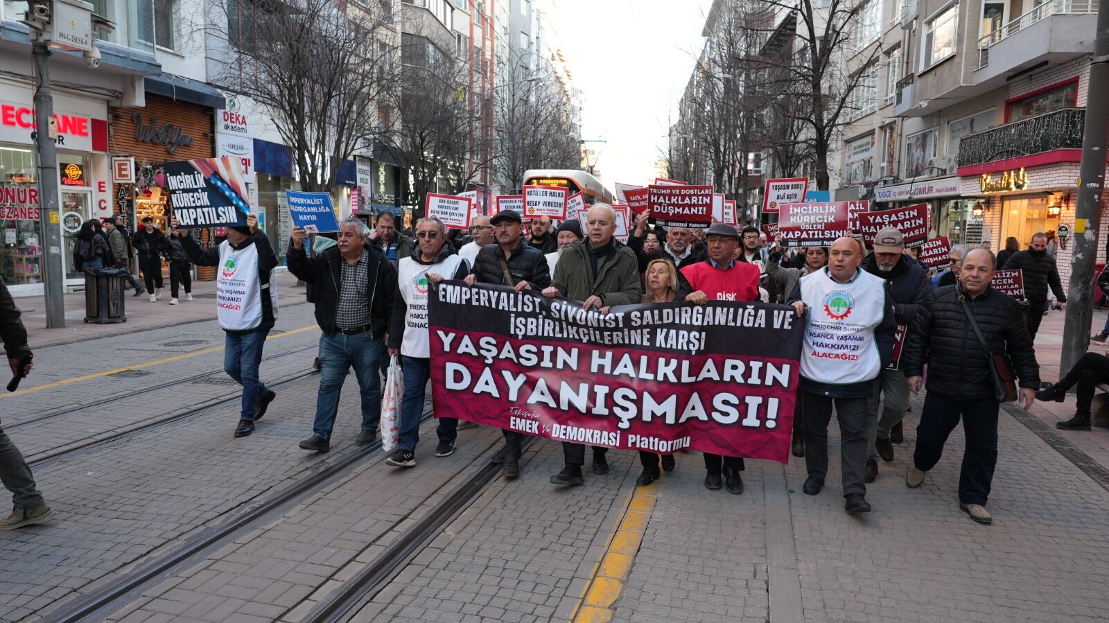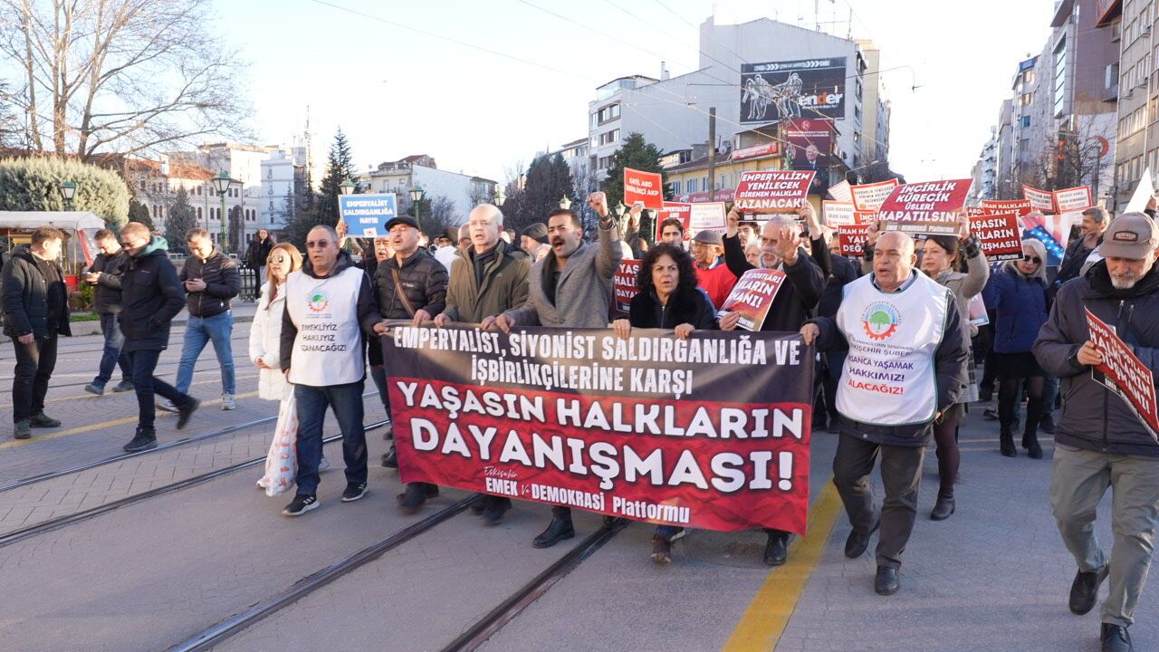Eskişehir’de Emek ve Demokrasi Platformu üyeleri, İran’a yönelik saldırılara tepki göstermek amacıyla bir araya gelerek yürüyüş gerçekleştirdi. Yürüyüşe Cumhuriyet Halk Partisi (CHP) Eskişehir İl Başkanı Talat Yalaz, CHP Odunpazarı Kadın Kolları Başkanı Sibel Yeşildal ile çok sayıda platform üyesi katılım gösterdi. Platform adına açıklama yapan Bengi Yıldırım, savaşın bölgeyi büyük bir çatışma ortamına sürüklediğini belirterek İran halkıyla dayanışma mesajı verdi.