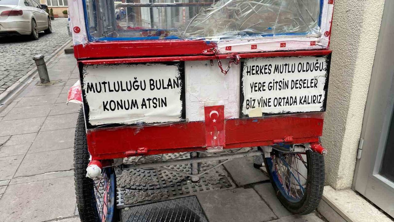 Odunpazarı İlçesi İstiklal Mahallesi Sökmener Sokak’ta bulunan seyyar bir araç dikkat çekti. Aracın üzerindeki, "mutluluğu bulan konum atsın" ve "herkes mutlu olduğu yere gitsin deseler, biz yine ortada kalırız" yazılı yazılar çevredekilerin gözüne çarptı. Aracın üstünde taşıdığı ilginç mesajlar, görenleri hem güldürdü hem de düşündürdü.