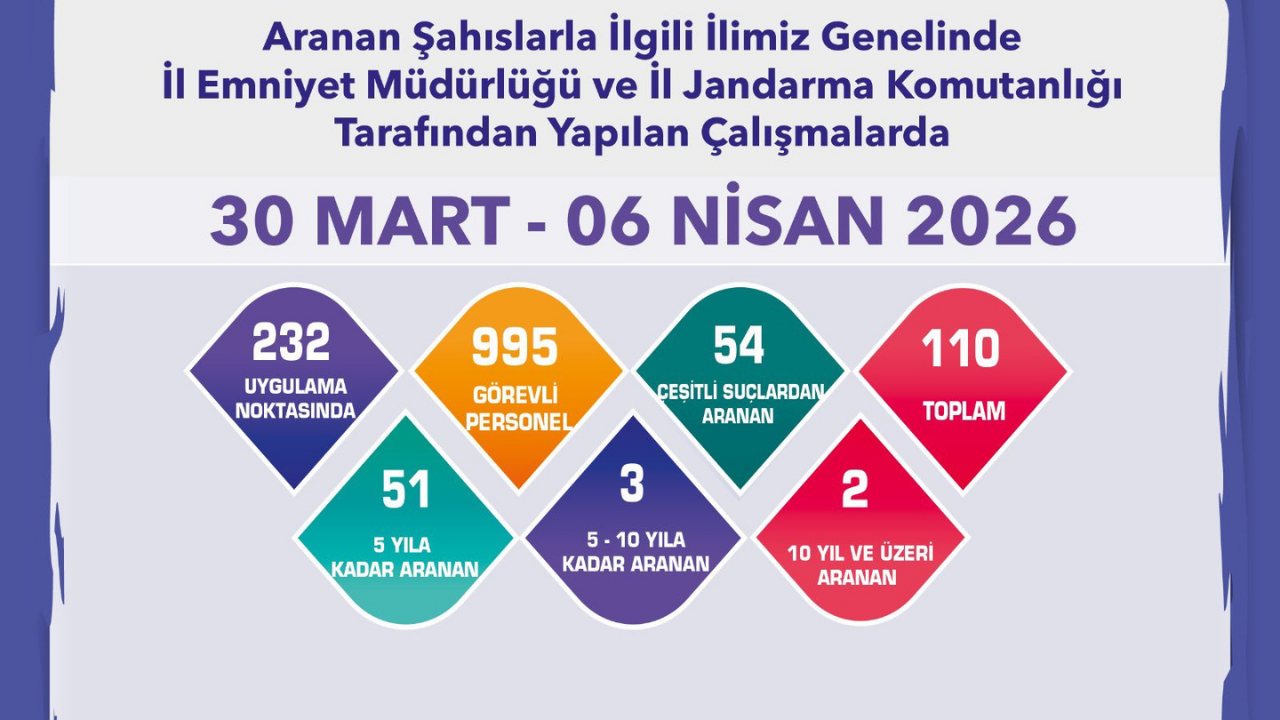 “İlimiz genelinde aranan şahıslara yönelik çalışmalarımız planlı ve kararlı bir şekilde devam etmektedir. Kamu düzeninin korunması için denetimler artırılarak sürdürülecektir.”