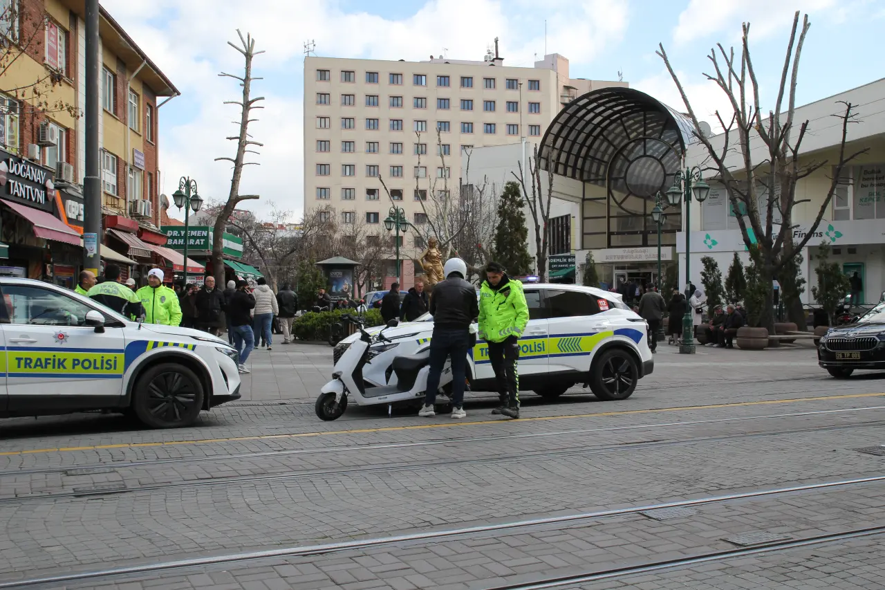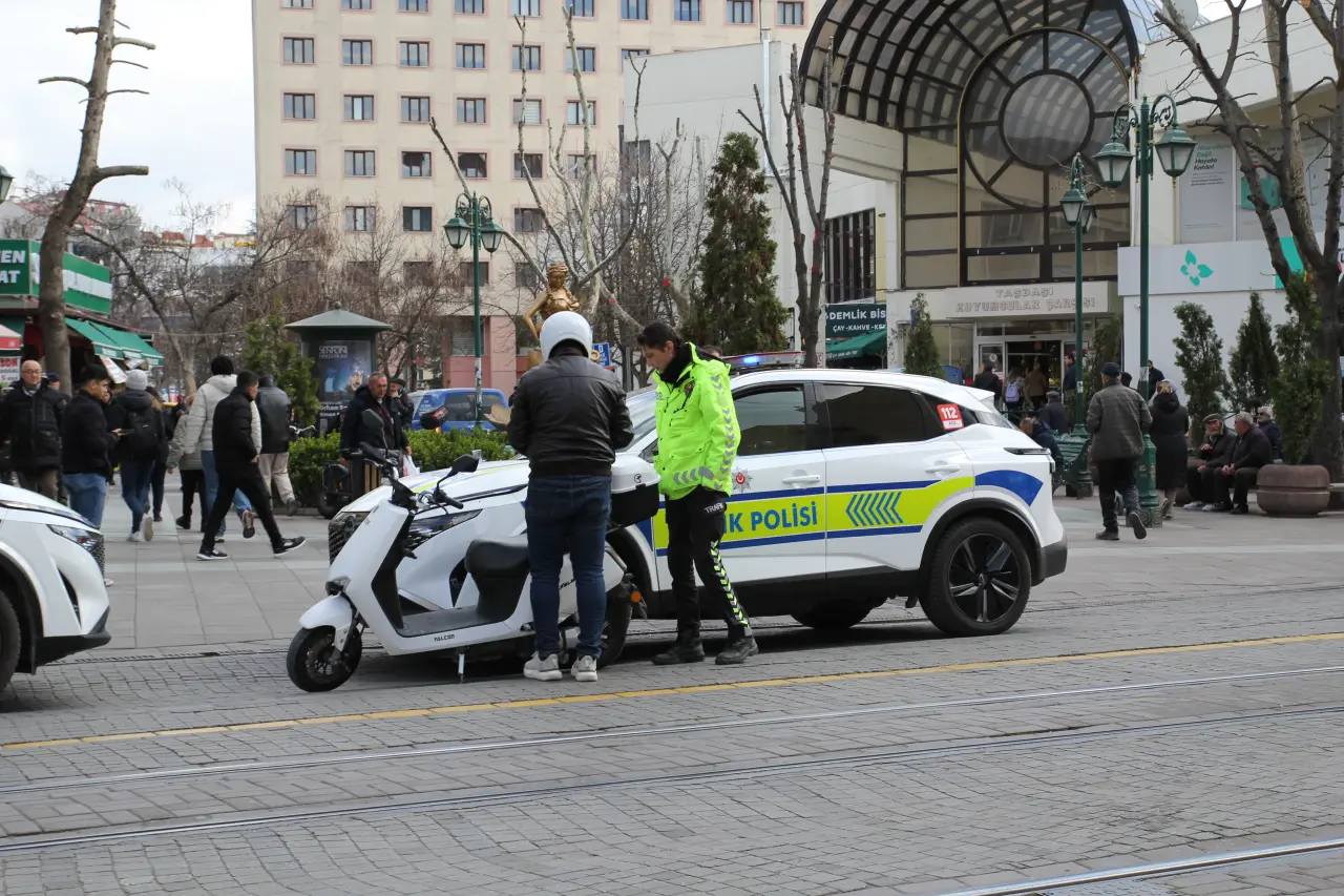 Eskişehir’de trafik polisleri, araç trafiğine kapatılan ve yayaların güvenli bir şekilde kullanması için ayrılan yollarda motosiklet, elektrikli bisiklet ve scooter denetimlerini sıklaştırdı. Bugün de şehir merkezindeki yayalaştırılmış bölgelerde sürücüler durdurularak kurallar hatırlatıldı.