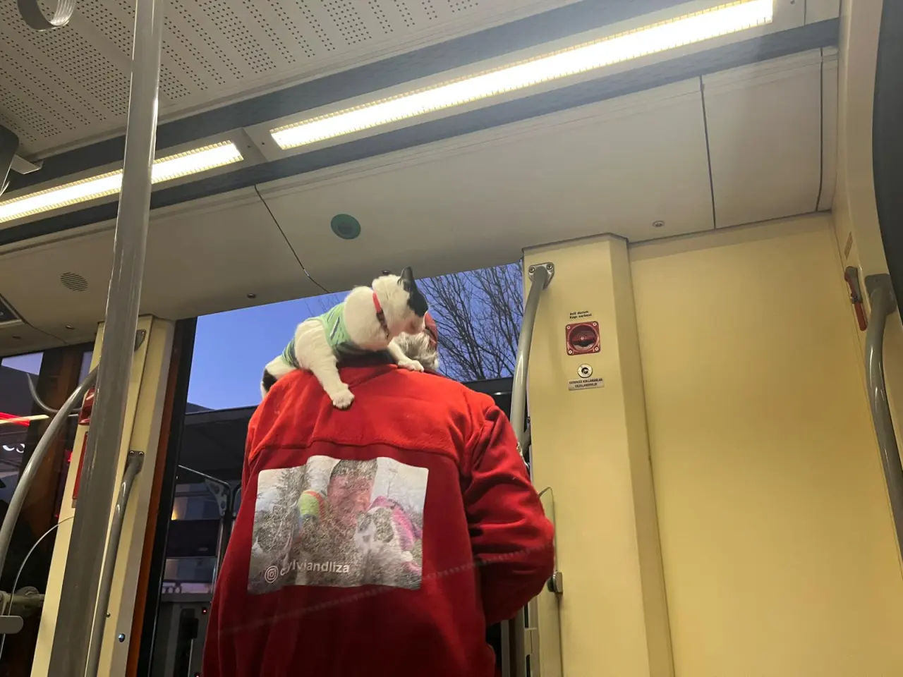 Eskişehir’de sokaklarda kedisini omzunda taşıyarak gezmesiyle tanınan kişi, bu kez tramvay yolculuğunda görüntülendi. Üzerinde renkli bir kıyafet bulunan sevimli kedi, sahibinin omzunda rahat bir şekilde dururken, yolcuların dikkatini çekti.