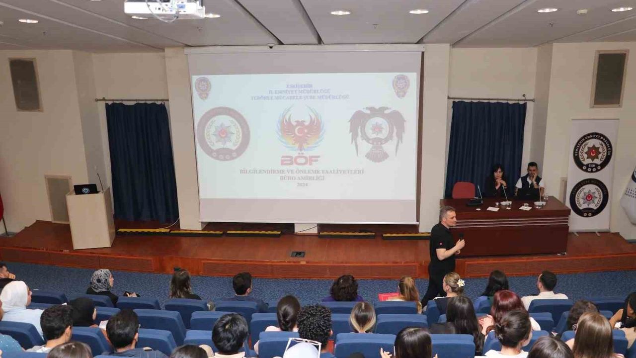 Bilgilendirme ve önleme faaliyetleri kapsamında ESOGÜ Kongre ve Kültür Merkezinde gerçekleştirilen, üniversite akademik ve idari personelinin de katıldığı seminerin açılış konuşmasını ESOGÜ TÖMER Müdürü ve Uluslararası Öğrenci Kabul ve Kayıt Koordinatörü Prof. Dr. Oktay Berber yaptı. Berber, "Ailelerin ve bireylerin korunmasını ve suç teşkil edecek eylemlerin gerçekleşmeden önlenmesini hedefleyen Emniyet Müdürlüğümüzün katkılarıyla, öğrenim görmek üzere Türkiye’de bulunan ve toplumun bir parçası olan siz kıymetli öğrencilerimizin karşılaşabileceği muhtemel sorunlara karşı yapabileceklerinizi anlatmak amacıyla bir araya gelmiş bulunuyoruz. İl Emniyet Müdürlüğü uzman personellerimiz ve katılımlarından dolayı uluslararası öğrencilerimize teşekkürlerimi iletiyorum" dedi.