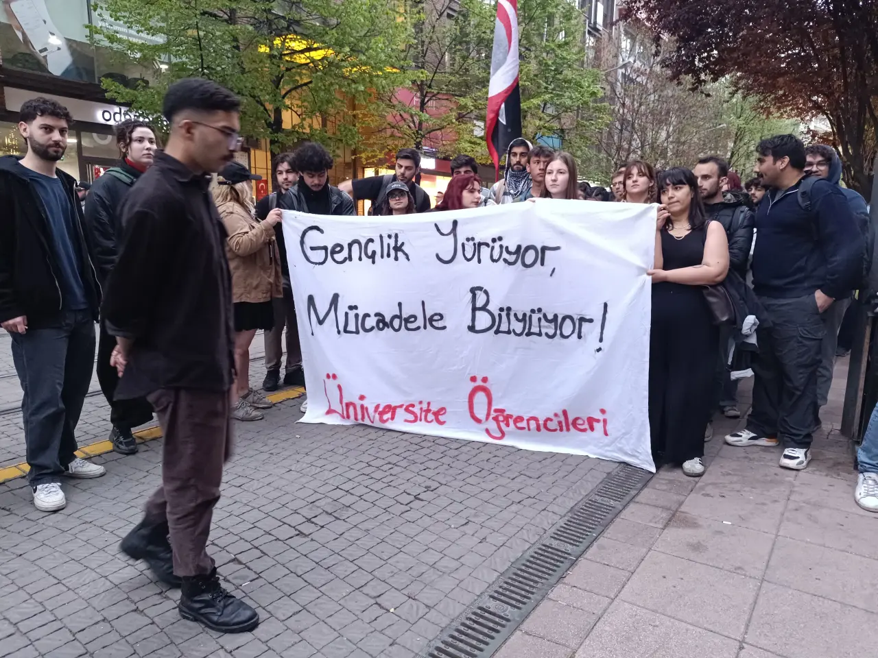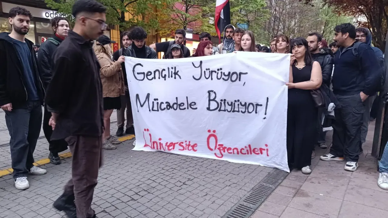 Eskişehir’de bir grup üniversite öğrencisi tarafından protesto yürüyüşü düzenlendi. Öğrenciler, yürüyüş sırasında “Gençlik yürüyor, mücadele büyüyor” yazılı pankart taşıdı.