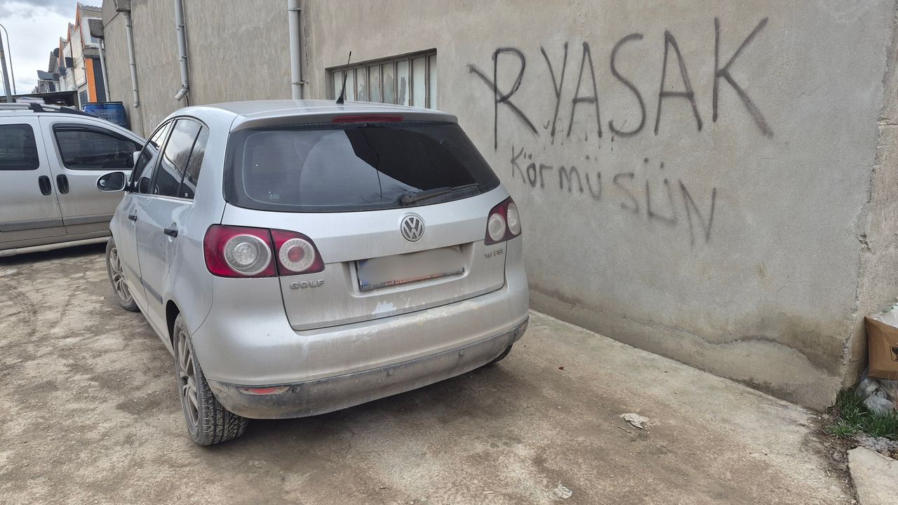 İmalathane sahibi veya çalışanlarının uyarısı niteliğinde duvara yazılan mesaj, araçların parkını engelleyemedi. Cep telefonu kameralarıyla kaydedilen görüntüler, sosyal medyada da ilgi çekti.