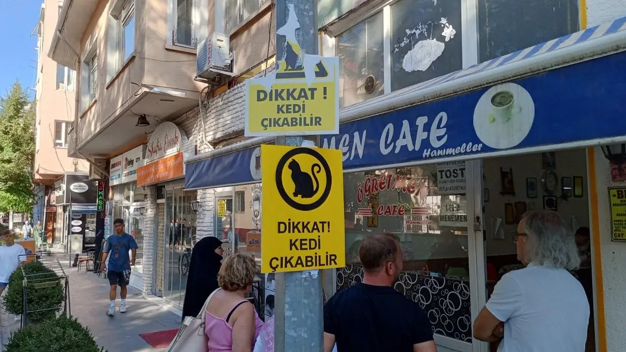 Odunpazarı İlçesi İstiklal Mahallesi Santral Sokak’taki bir esnaf, sürekli yaşanan hayvan kazaları sebebiyle bir ışık direğine internetten sipariş ettiği “Dikkat Kedi Çıkabilir” yazılı uyarı levhasını yapıştırarak tedbir almak istedi. İlginç levha sokağın başından itibaren gözlere çarparken, kimliği belirsiz şahıs veya şahıslar malzemesi plastik olan tabelayı yırtarak yerinden söktü. Astığı levhaların zarar gördüğünü fark eden esnaf ise aynı üründen tekrardan sipariş ederek direğe yeni uyarılar yapıştırdı. Olay sonrasında kamerasını birkaç gün boyunca uyarı levhalarının bulunduğu direğe doğrulttuğunu belirten esnaf, 2 defa aynı durumla karşılaştığını aktardı.