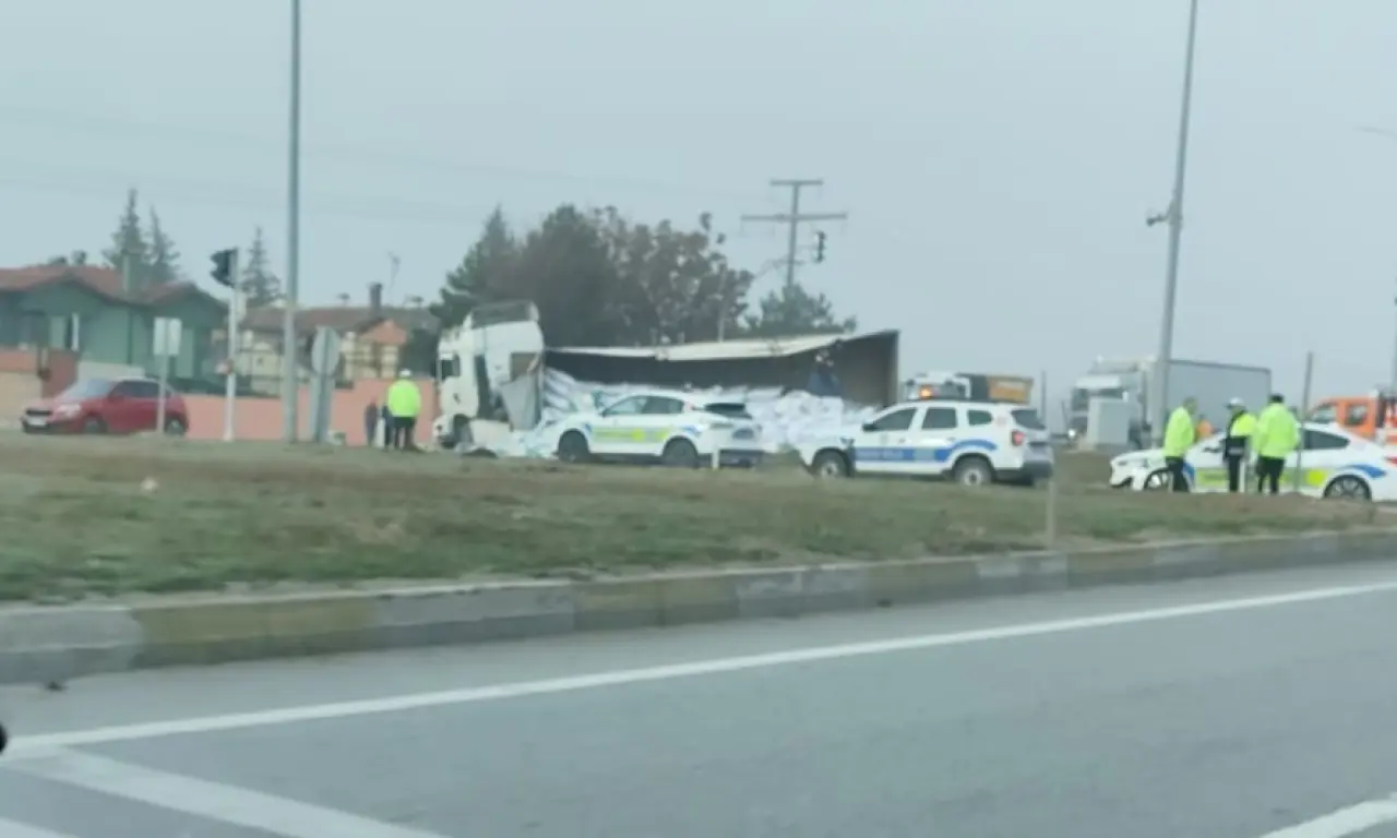 Tır, sürücüsünün direksiyon hâkimiyetini kaybetmesi sonucu önce refüjde sürüklendi, ardından bankete çıkarak bir aydınlatma direğini devirdi. Kontrolden çıkan araç daha sonra kavşakta yan yattı. Devrilen tırın dorsesindeki yükler kavşağa saçılarak yolu tamamen kapattı. Bu durum, özellikle sabah saatlerinde yoğun olan karayolunda uzun araç kuyruklarının oluşmasına neden oldu.