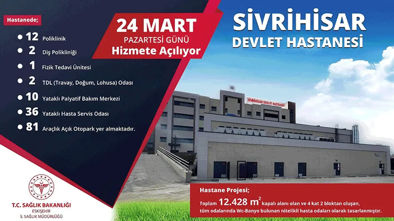 Eskişehir'in Sivrihisar ilçesinde, bugün itibarıyla hizmet vermeye başlayacak olan yeni Sivrihisar Devlet Hastanesi, bölgedeki sağlık altyapısını güçlendirecek ve vatandaşlara modern sağlık hizmetleri sunacak. 12.428 metrekare kapalı alan üzerine inşa edilen hastane, 4 katlı ve 2 bloktan oluşuyor.