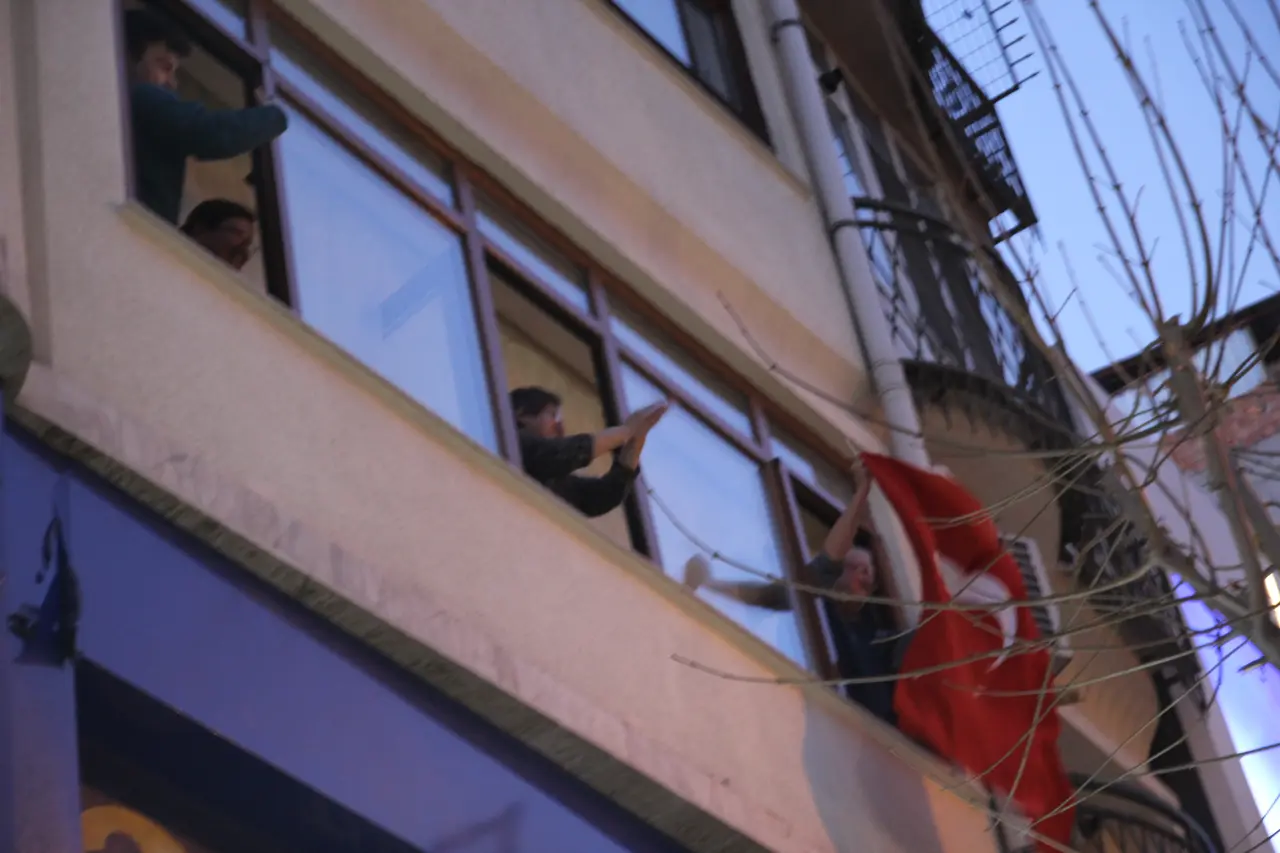 Yol kenarında bulunan araç sürücüleri ise kornalarıyla yürüyüşe destek verirken, bazı vatandaşlar o anları cep telefonlarıyla kaydetti. Özellikle yürüyüş güzergâhındaki apartmanlardan yapılan destekler dikkat çekti.