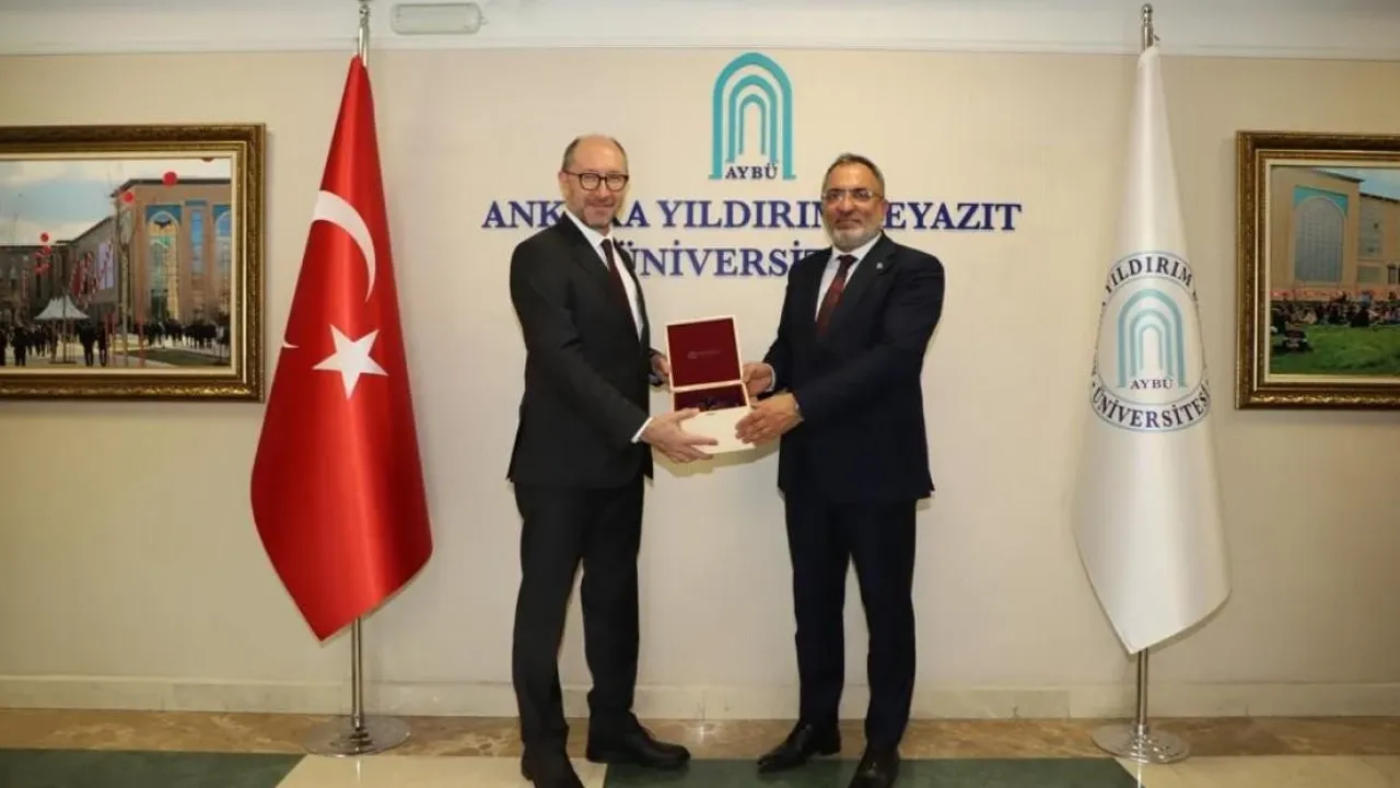 Anadolu Üniversitesi Rektörü Prof. Dr. Fuat Erdal, Ankara Yıldırım Beyazıt Üniversitesi (AYBÜ) Rektörü Prof. Dr. Ali Cengiz Köseoğlu’nu makamında ziyaret etti. Gerçekleştirilen ziyarette Prof. Dr. Erdal, AYBÜ Rektörlüğüne atanan Prof. Dr. Ali Cengiz Köseoğlu’na yeni görevinin hayırlı olması temennisinde bulunarak başarılar diledi. İki üniversite arasında kurulacak iş birliklerinin de görüşüldüğü ziyarette AYBÜ Rektörü Köseoğlu, Rektör Erdal'a nazik ziyaretinden dolayı teşekkür etti.