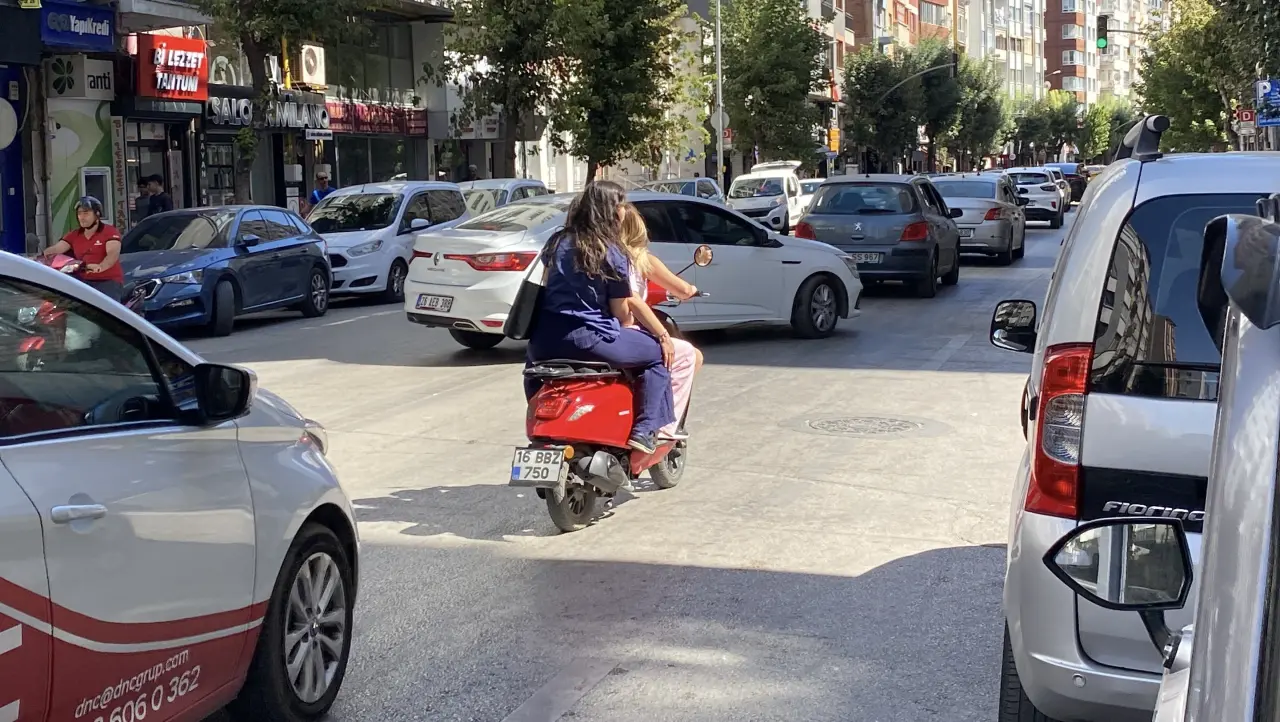 Cengiz Topel caddesi üzerinde bir kadın sürücü, scooter tipi motosiklet ile 2 kadını yolcu olarak taşıdı. Kask veya herhangi bir güvenlik ekipmanı takmadan riskli şekilde seyir eden kadınlar, trafiği tehlikeye düşürdü.