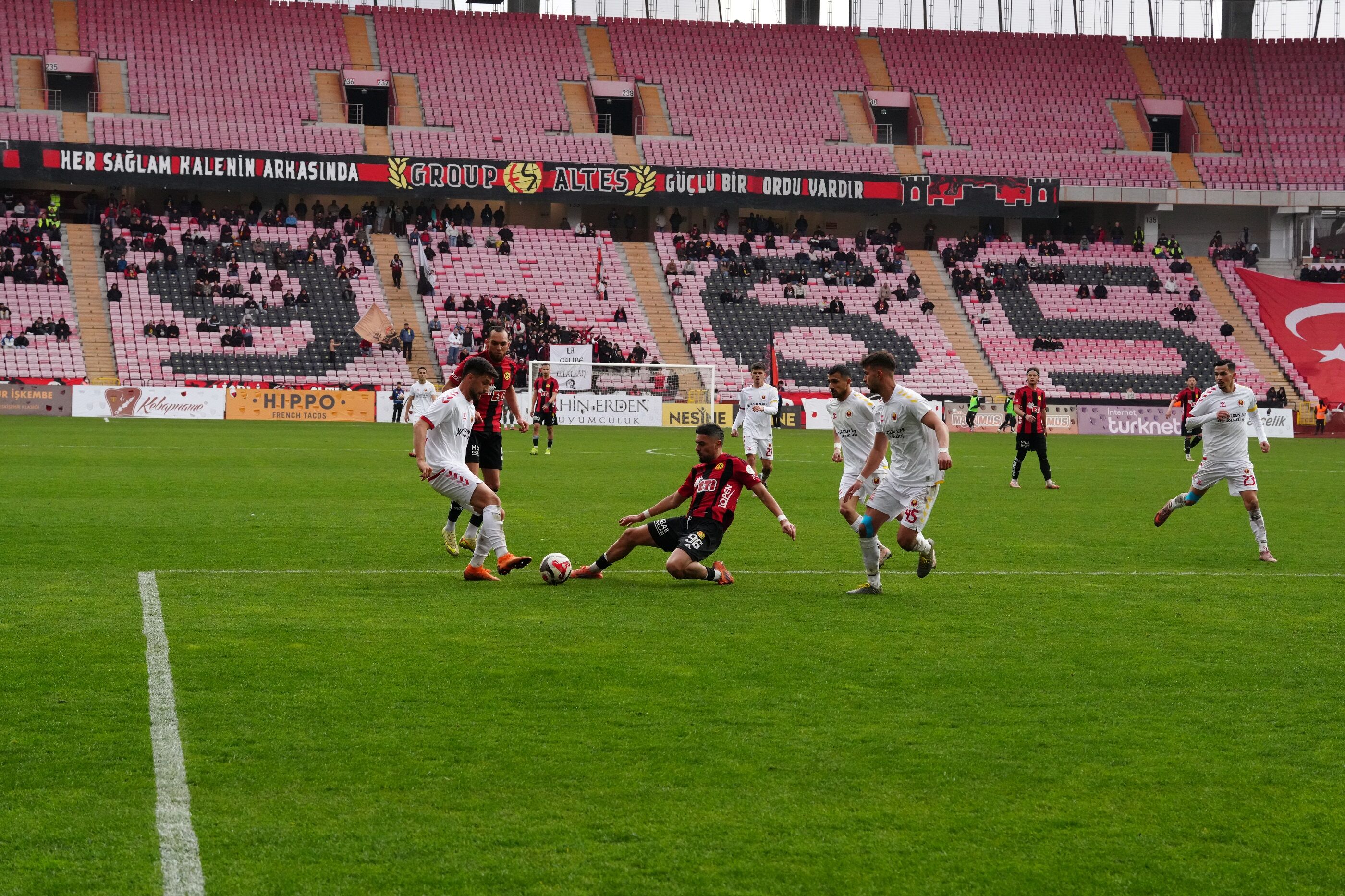 Soyunma odasından 2-0'ın avantajıyla dönen Siyah-Kırmızılılarda teknik direktör, oyunun kontrolünü tamamen ele almak için ilk hamlesini devre arasında yaptı. 46. dakikada Murat Şenel kenara alınırken, Mustafa İnan orta sahaya dinamizm katmak üzere oyuna dahil oldu.