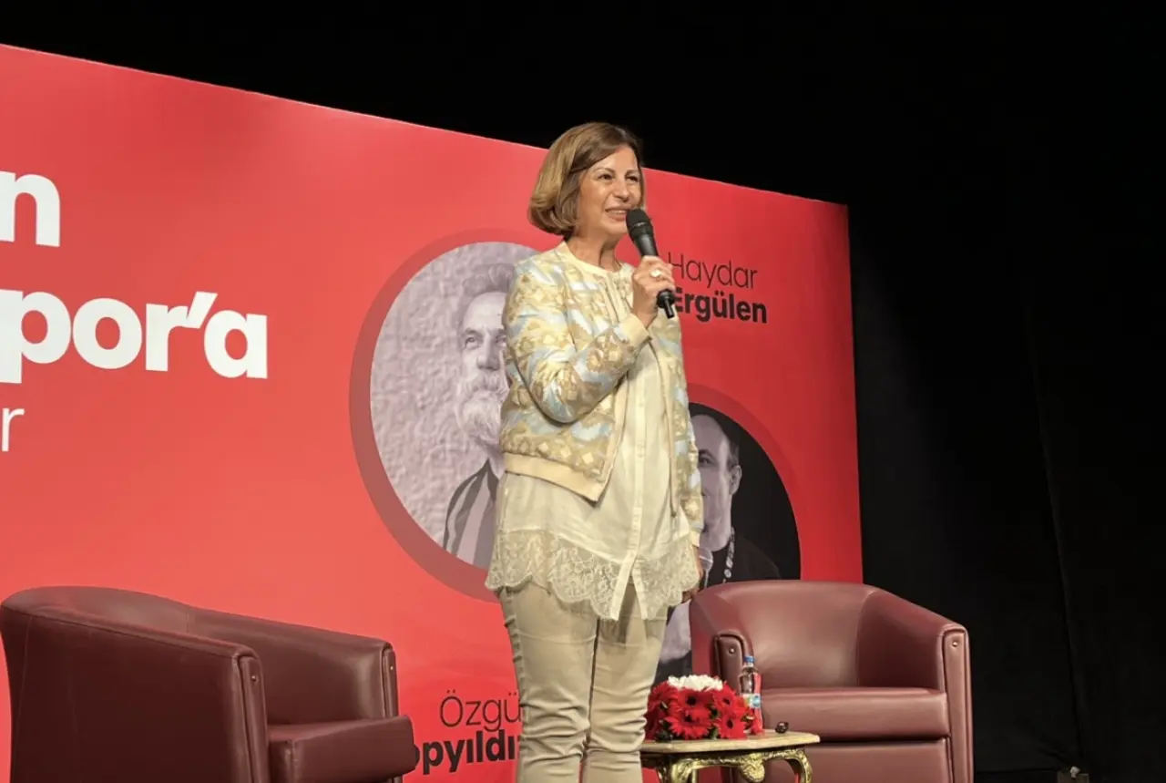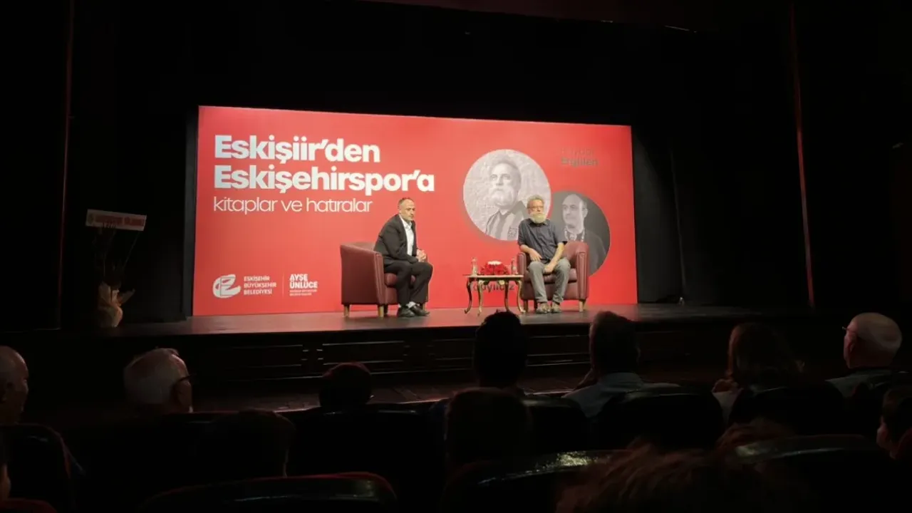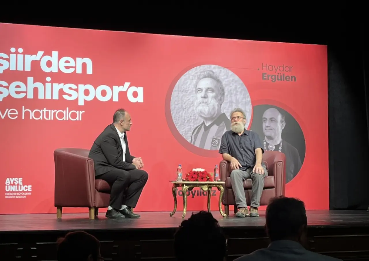 “Çok özel bir söyleşi için buradayız. Eskişehirspor taraftarlarıyla birlikteyiz. Haydar Ergülen ve Özgür Topyıldız’ı dinleyeceğiz. Eskişehir gerçekten çok özel bir şehir. Sadece bu şehirde doğduğumuz, bu topraklarda yaşadığımız için değil; aynı zamanda bir yıldız gibi parladığı için Eskişehirli olmaktan gurur duyuyoruz. Konu Eskişehir olunca ayrı bir heyecanlanıyoruz.”