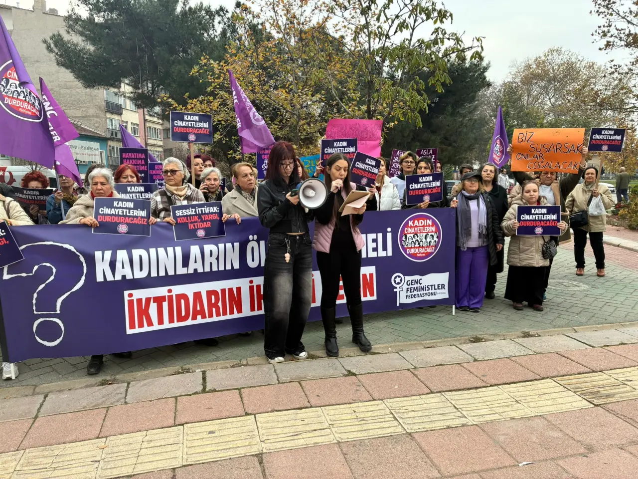 Doğan, kadın cinayetlerinin bireysel olaylar değil, baskıcı politikaların ve adaletsizliğin sonucu olduğunu dile getirerek, “Adaletin olmadığı yerde yaşam hakkı korunmuyor. Kadınların sesi kısılırken toplumun hak arama mekanizmaları da baskılanıyor” dedi.