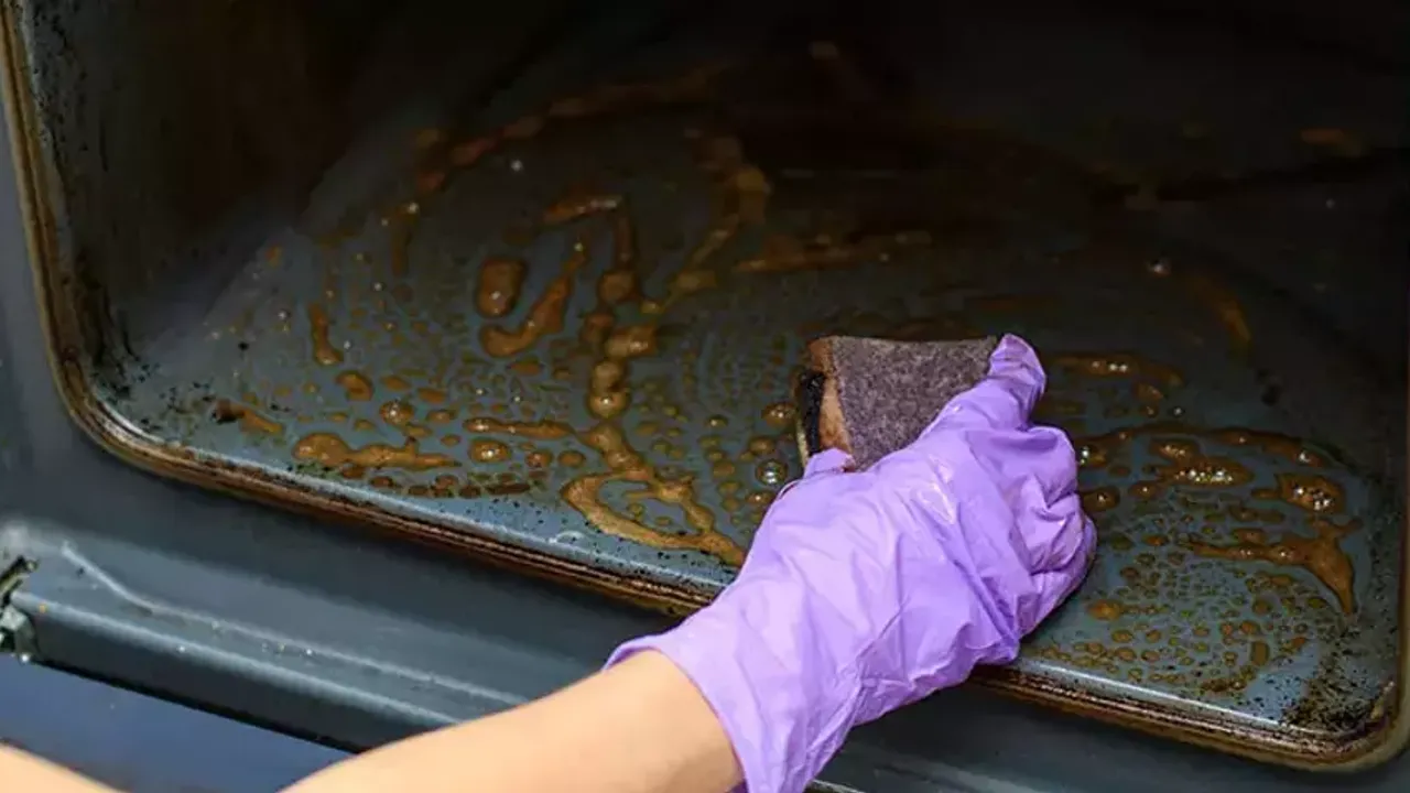 Fırın tepsisinin içine sıcak su doldurun, birkaç dilim limon ekleyin ve 1 saat bekletin. Limonun asidi yağ ve yanık kalıntılarını yumuşatır. Süngerle silerek kolayca temizleyebilirsiniz.