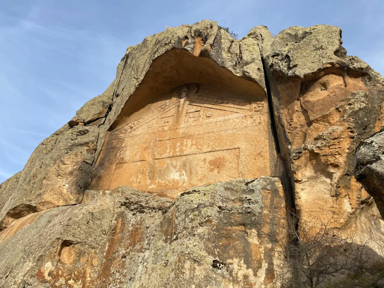 Bölgede yer alan bitirilmemiş anıt ise, Friglerin anıtları hangi tekniklerle inşa ettiğini gösteren önemli bir örnek olarak öne çıktığını söyleyen Arif Açık, “Anıtın, kayanın yukarıdan aşağıya doğru iskele sistemiyle derinleştirilerek işlendiği ve farklı yönlere bakacak şekilde konumlandırıldığını ifade ediyor” dedi.