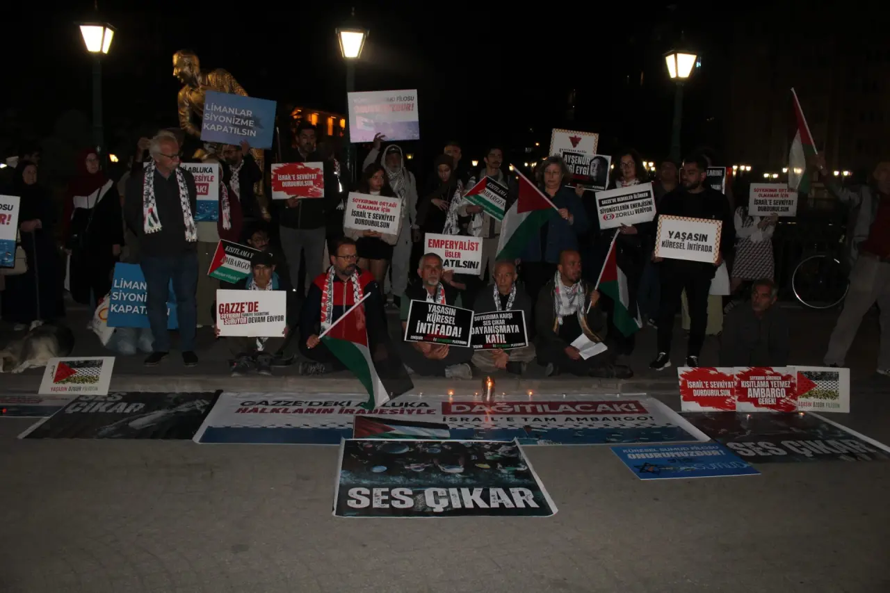 Filistin halkının özgürlük mücadelesinin “Nehirden denize özgür Filistin” şiarı gerçekleşene kadar süreceğini vurgulayan Baştürk, “Bugün yanımızda bulunan bu mumlar tüm dünyada Sumud Filosuna destek olmak için bir araya gelen Hepimiz Gazze, Hepimiz Filistin inisiyatifinin mumlarıdır. Bugün ‘Hepimiz Gazze Hepimiz Filistin demek’, ‘Yaşasın Küresel İntifada’ diye haykırmak Gazze’nin yanında olmaktır. Filistin direnişine selam göndermektir. ‘Sumud Filosu Onurumuzdur’ şiarını dünyaya haykırmaktır” dedi.