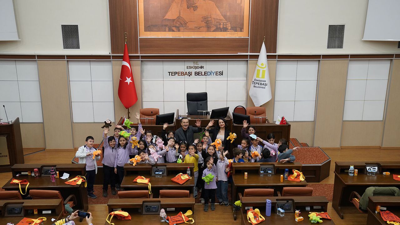 Tepebaşı Belediyesi Meclis Salonu’nda gerçekleşen buluşmada Başkan Ataç, öğrencilerle sıcak ve samimi bir sohbet gerçekleştirdi. Belediye başkanının görevleri ve yerel yönetimlerin sorumlulukları hakkında merak ettiklerini dile getiren çocuklar, “Belediye başkanı ne yapar?”, “Nasıl belediye başkanı olunur?”, “Çocukken hangi mesleği hayal ediyordunuz?”, “Bir gününüz nasıl geçiyor?” ve “Bu görev zor mu?” gibi sorular yöneltti.