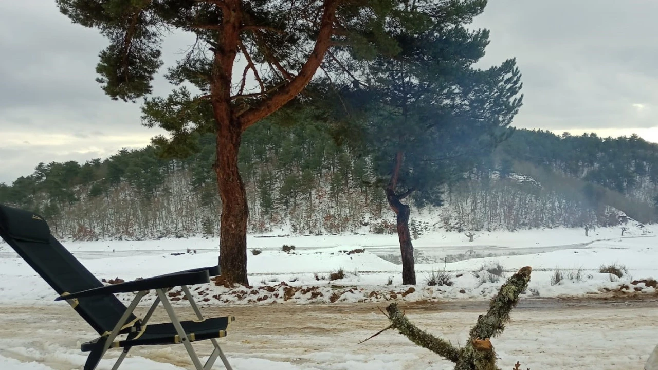 Karla kaplanan gölet çevresi, Osmaneli’nin doğal zenginliğini bir kez daha gözler önüne serdi.