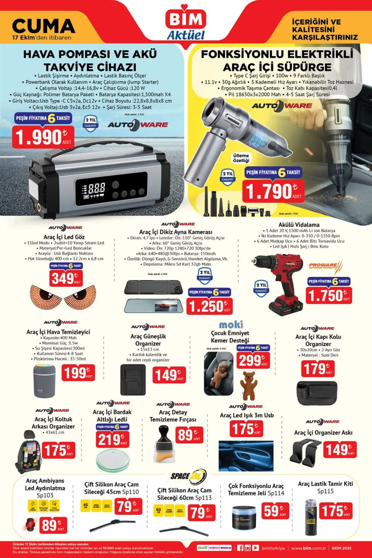 Alışveriş tutkunlarının heyecanla beklediği BİM 17 Ekim 2025 aktüel kataloğu yayımlandı! Bu hafta Cuma günü BİM rafları adeta teknoloji ve indirim yağmuruna sahne olacak. Ev elektroniğinden çocuk oyuncaklarına, araç içi aksesuarlardan kişisel bakım ürünlerine kadar pek çok ürün, uygun fiyatlarla tüketiciyle buluşuyor.